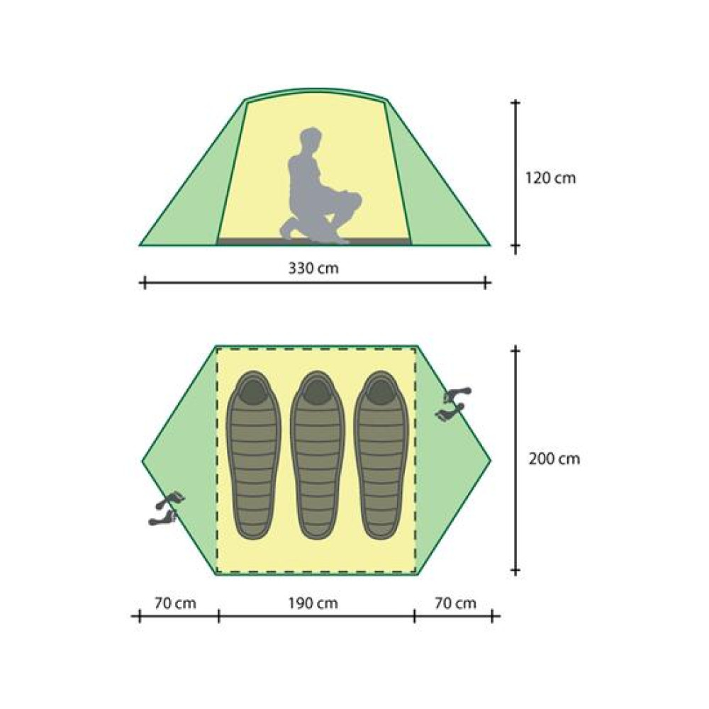 | Габариты установленной палатки(Длина, ширина, высота) | 330х200х120 см |