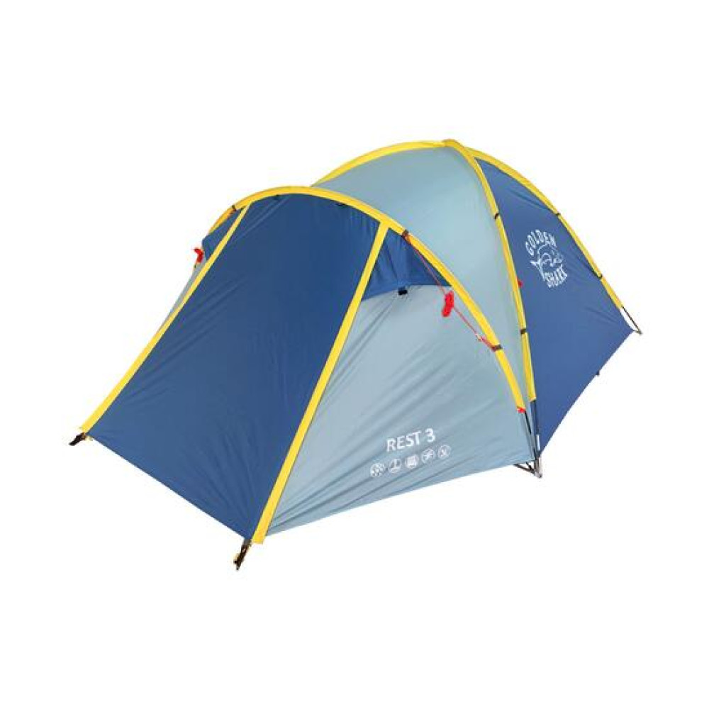 | Габариты установленной палатки(Длина, ширина, высота)330x230x130 см ОписаниеХарактеристикиОтзывыТеги Трехместная палатка GOLDEN SHARK Rest 3 - обновленная в 2019 году, одна из самых популярных палаток в модельном ряду GOLDEN SHARK. ✅Прочная на разрыв, усил | Golden shark |