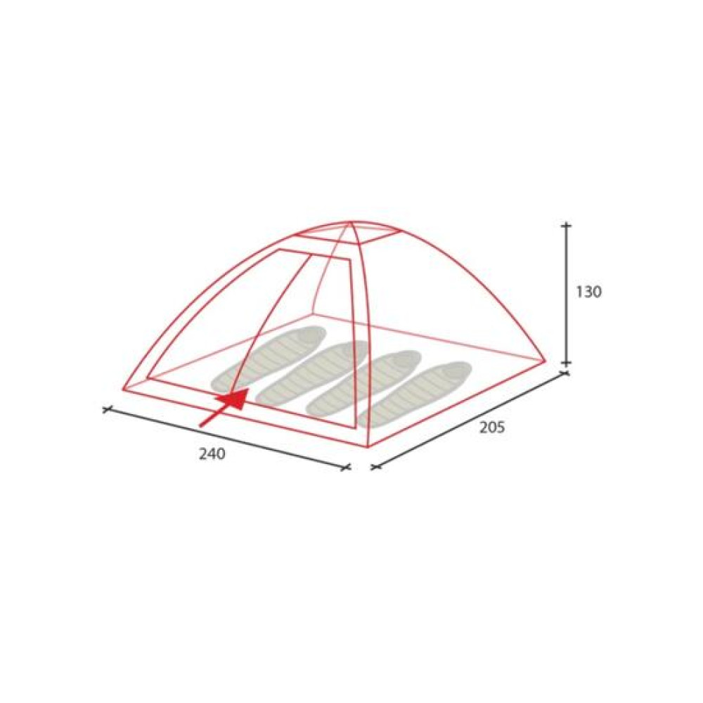 | Водостойкость тента4000 мм | Время сборки (сек)60 | Габариты установленной палатки(Длина, ширина, высота)205х240х130см |