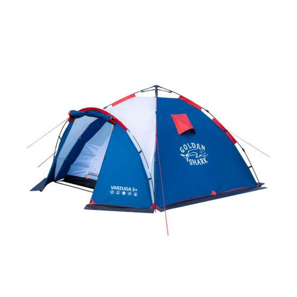 | Габариты установленной палатки(Длина, ширина, высота)300х235х140 ОписаниеХарактеристикиОтзывыТеги Полуавтоматическая палатка Golden Shark Varzuga 3 plus - новинка 2021 года в модельном ряду GOLDEN SHARK. ✅Благодаря инновационной системе FASTBERG сборка пал | Golden shark |