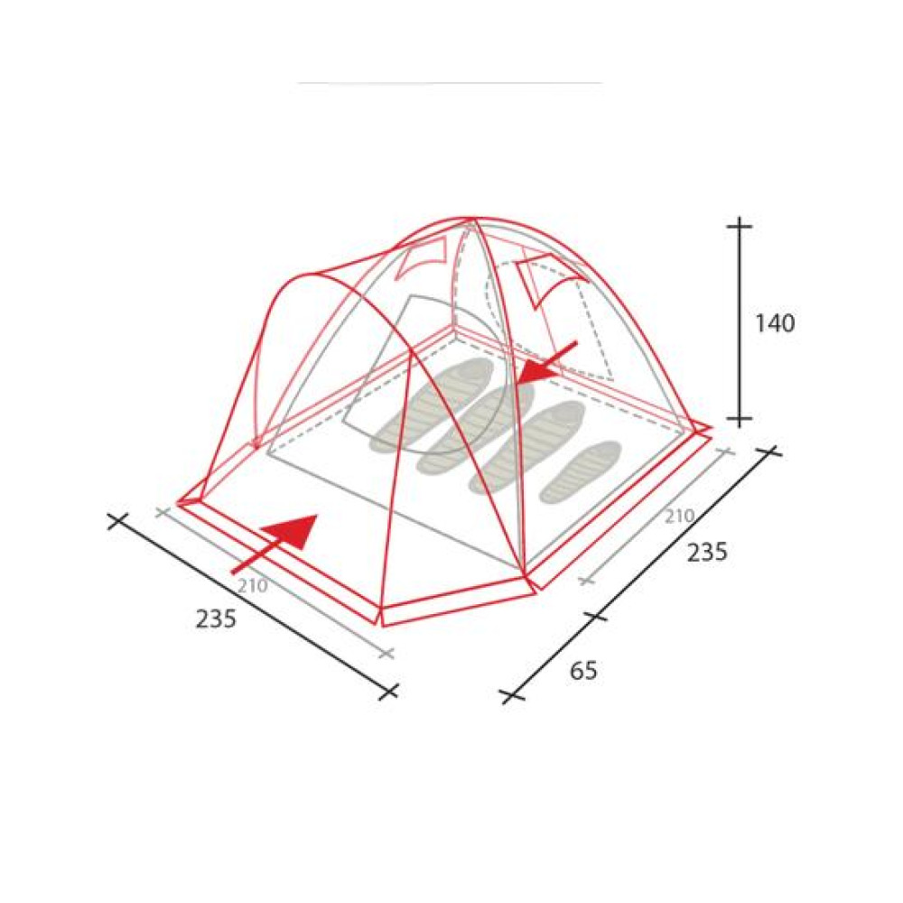 | Габариты установленной палатки(Длина, ширина, высота) | 300х235х140 |