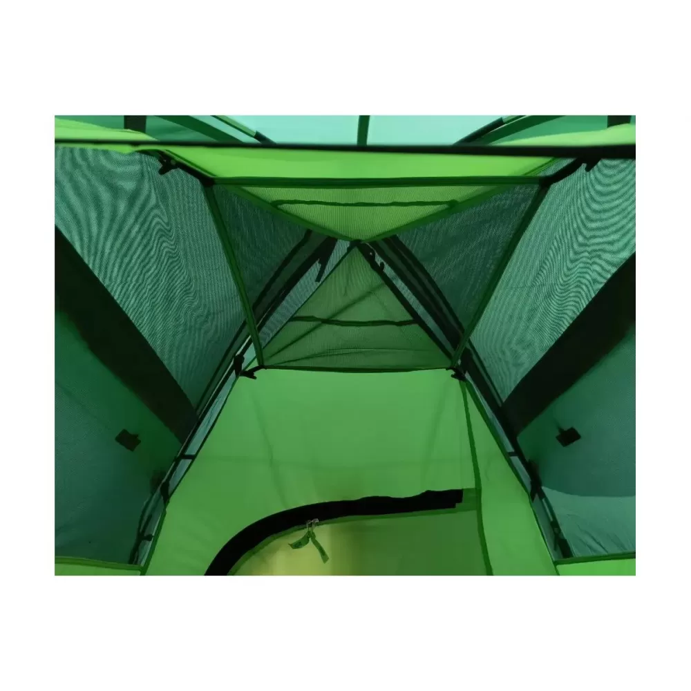 Палатка имеет двухслойную конструкцию благодаря чему улучшается вентиляция, предотвращается выпадение конденсата, а также создается дополнительная защита от насекомых