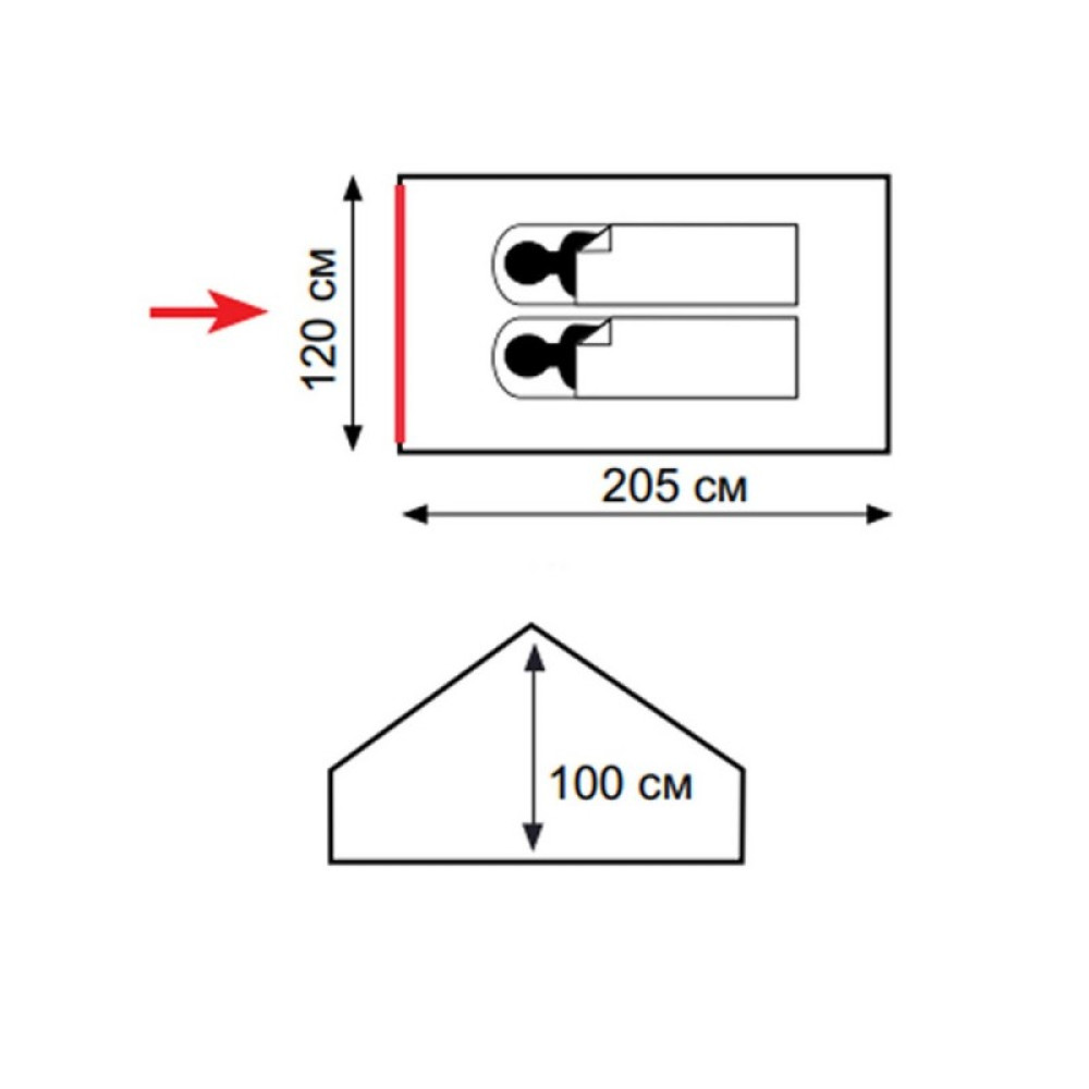 | Вместимость, чел2 | Высота, см100 | Длина, см200 |
