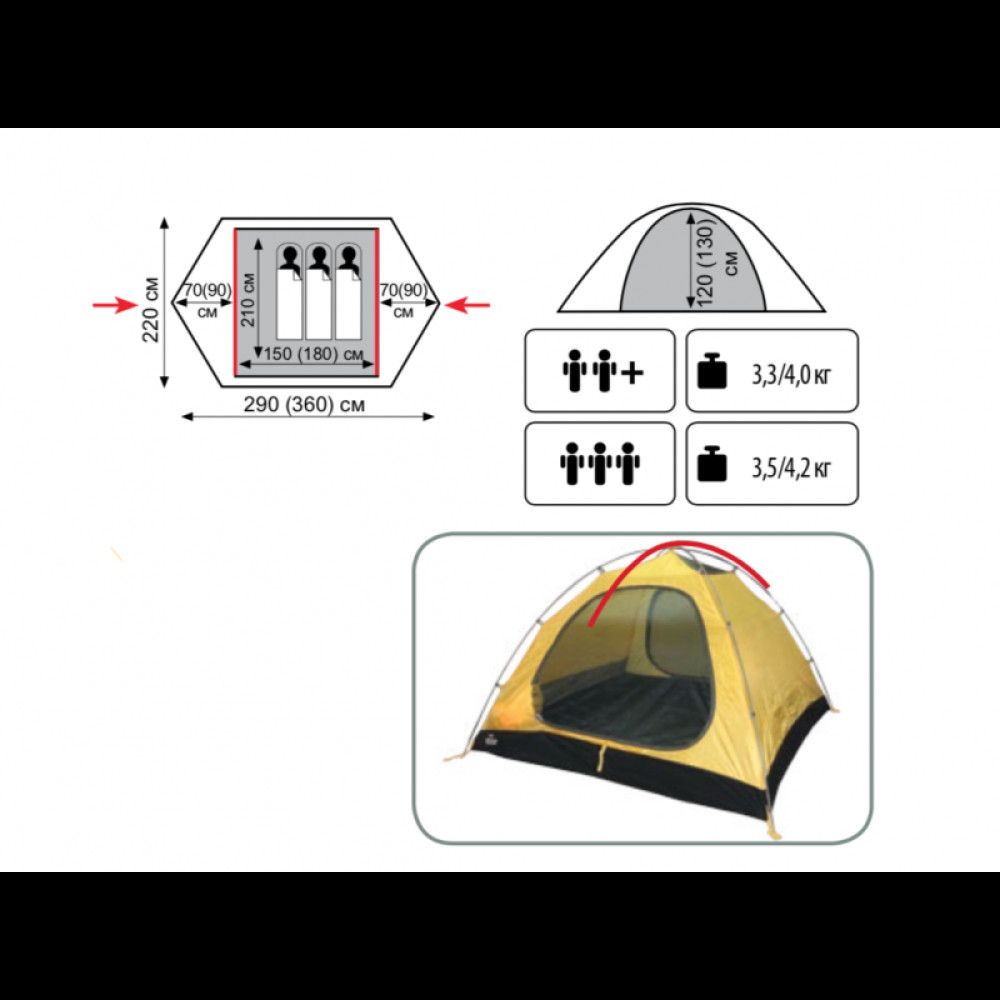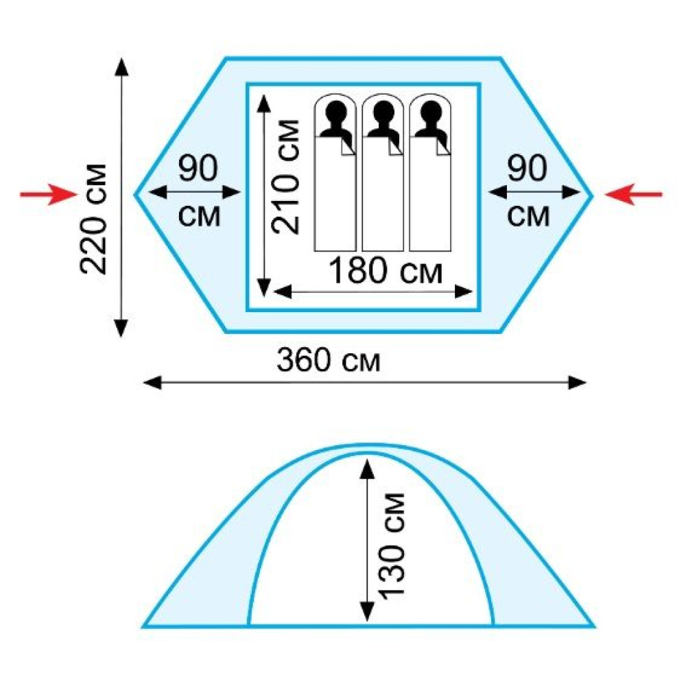 | Размеры палатки, см | 220 x 360 |