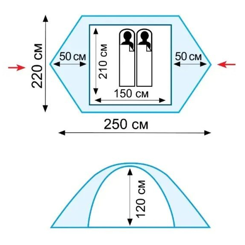 | Вместимость, чел2 | Высота, см120 | Длина, см250 |