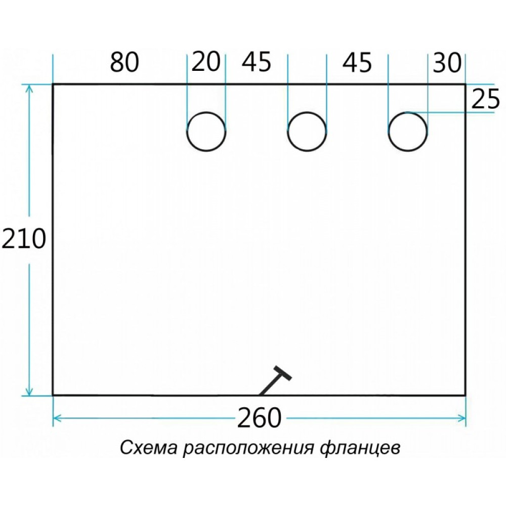 Продукт оснащен тремя фланцами. Расположение указано на схеме: