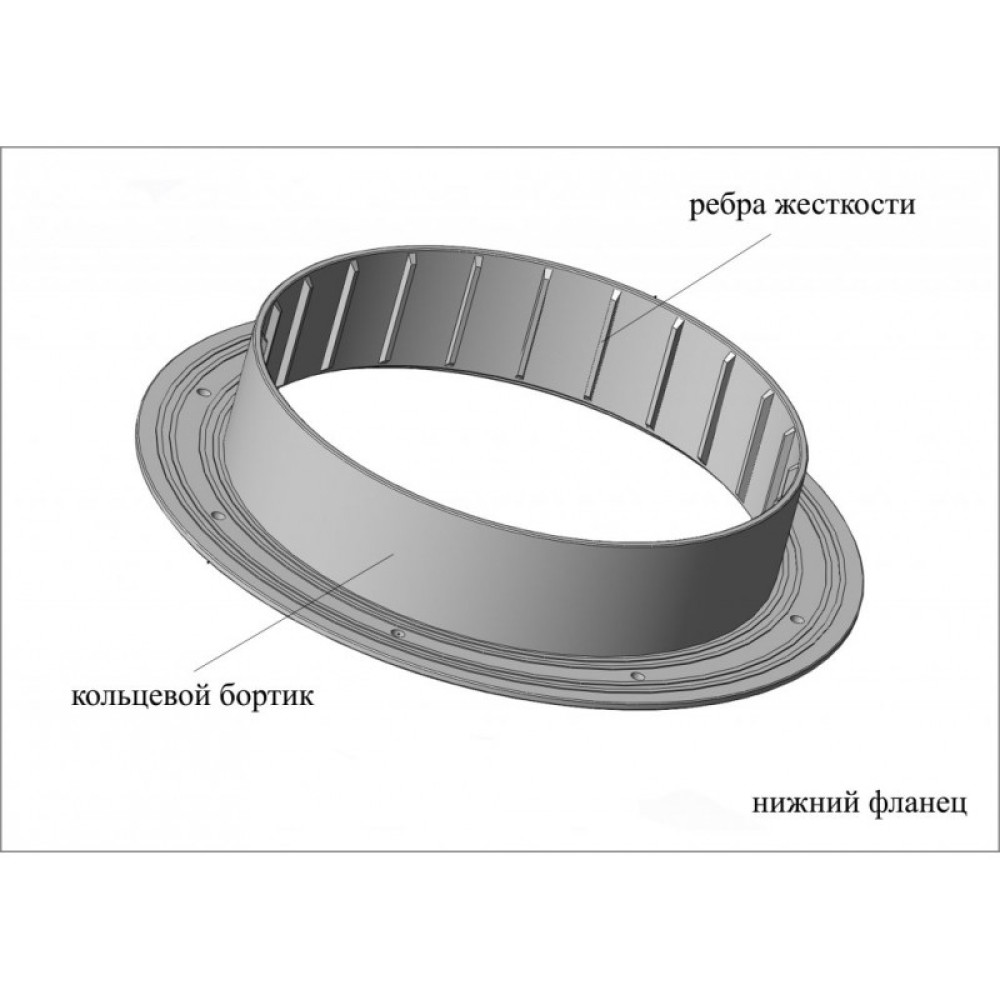 Изделие образует отверстие под лунку круглой формы диаметром 200 мм и состоит из двух частей: верхнего и нижнего фланца.