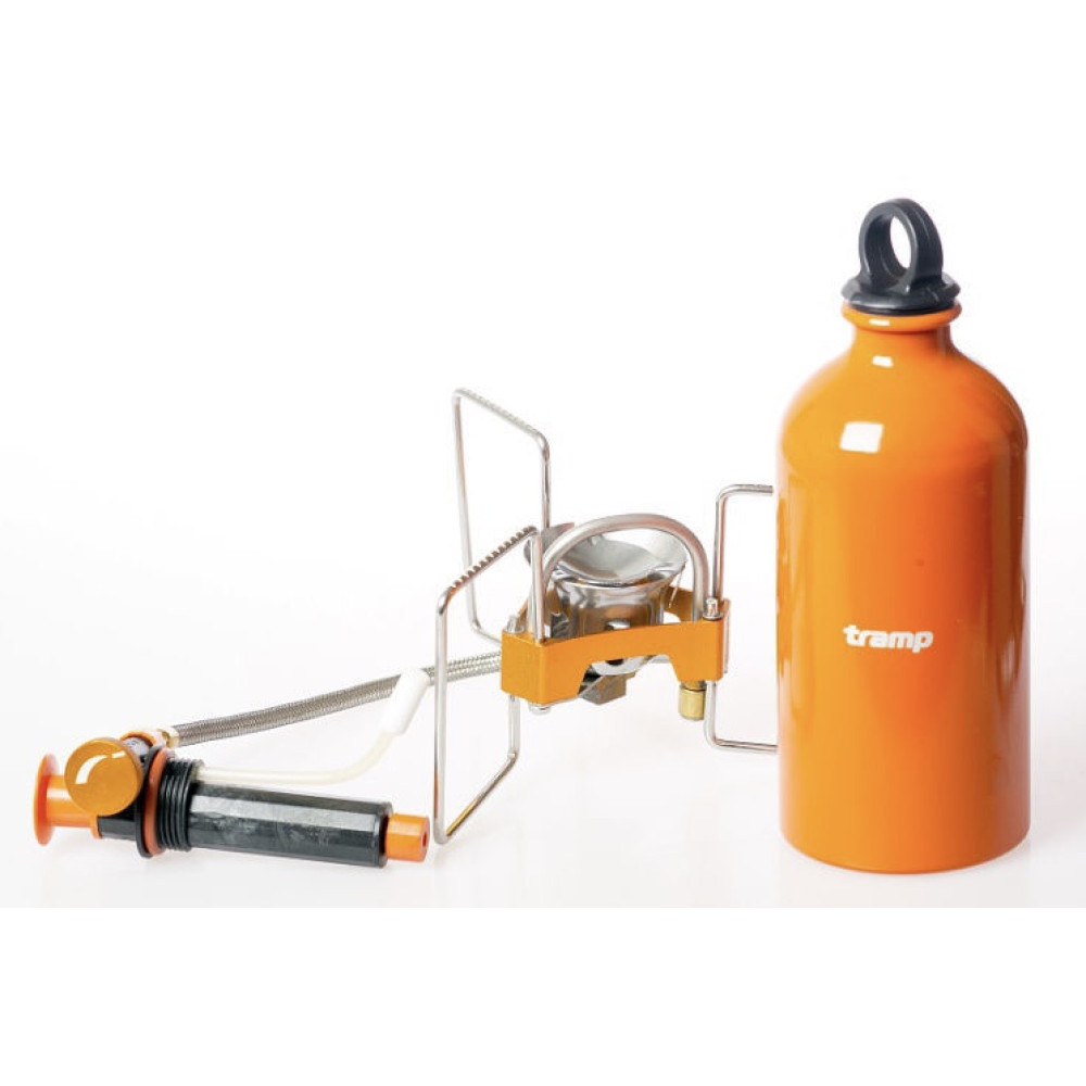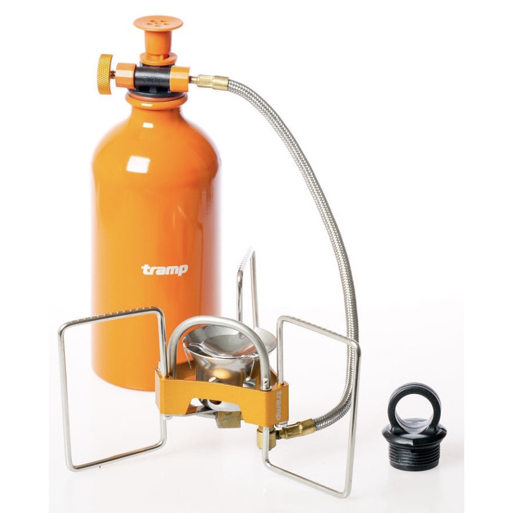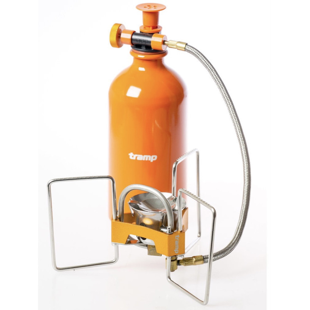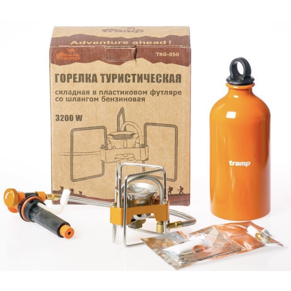 Горелка туристическая складная со шлангом бензиновая Tramp TRG-050 в наборе с ёмкостью для топлива и насосом.