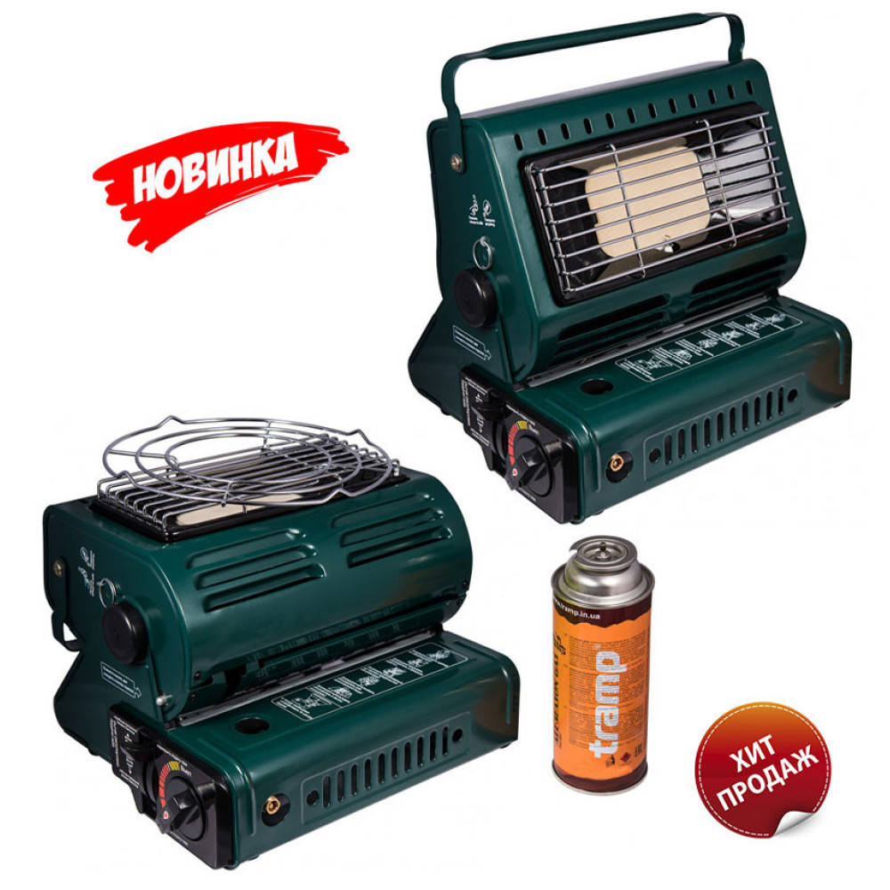 Обогреватель газовый с керамическим нагревательным элементом. Может использоваться в качестве плиты. Мощность - 1.3кВт, расход газа - 100г/ч