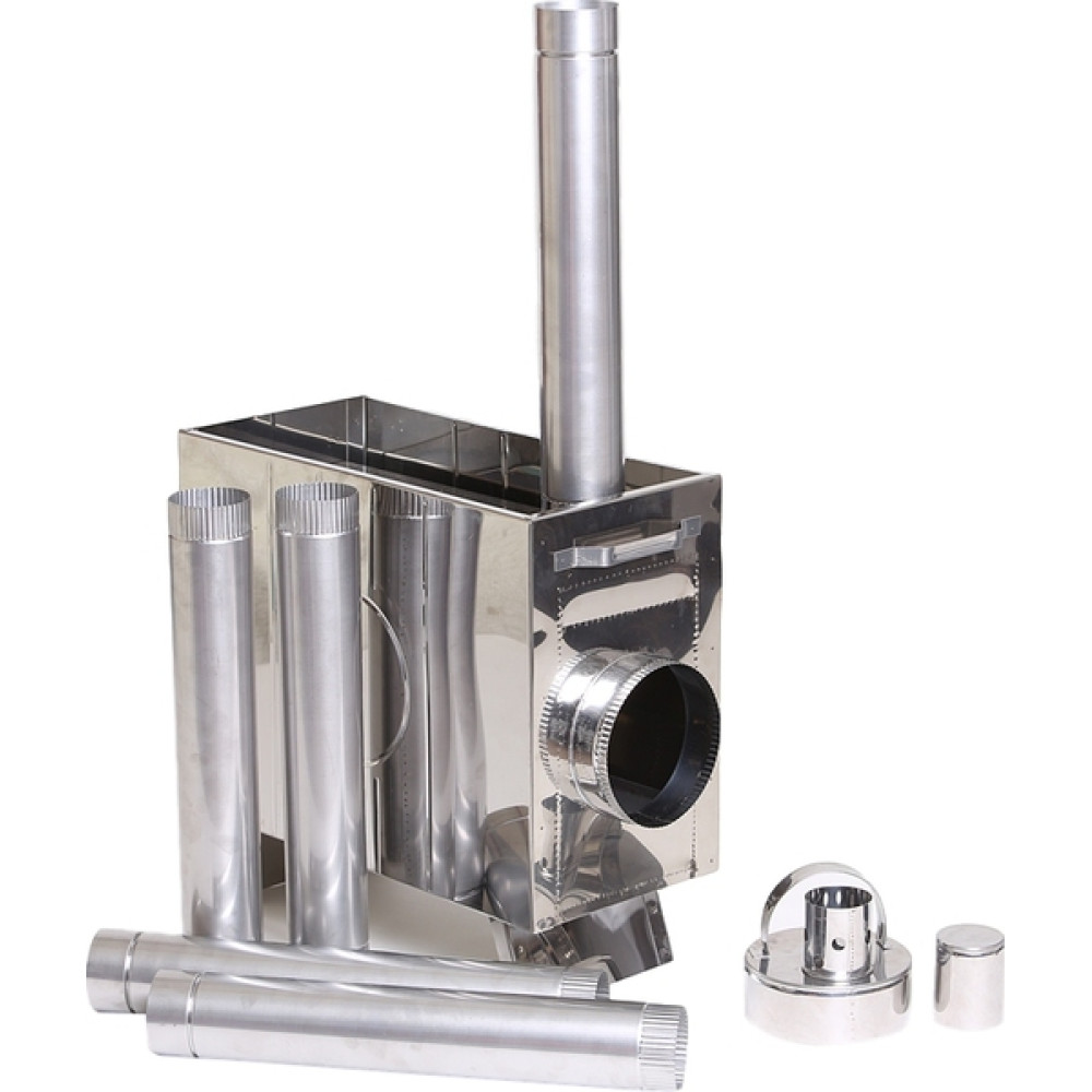 В погодных условиях не всегда легко раздобыть дрова, поэтому в печь вмонтирован пламегаситель, что позволяет значительно экономить топливо (дрова или древесный уголь) без потери КПД, а так же исключить образование искр, способствующих прогоранию тента.