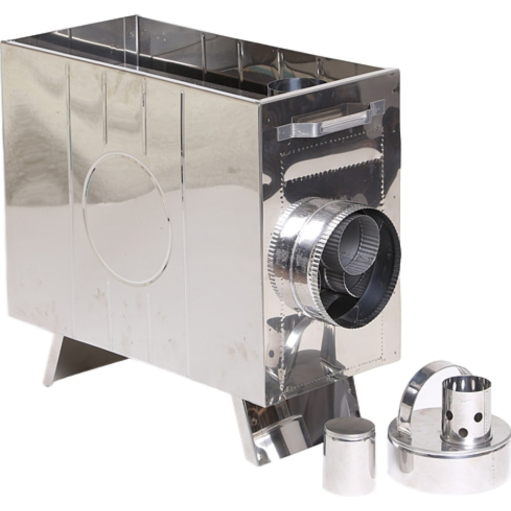 Печь Инвент для походной бани изготавливается из толстой нержавеющей стали: