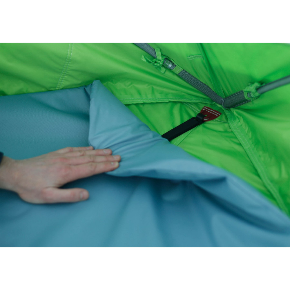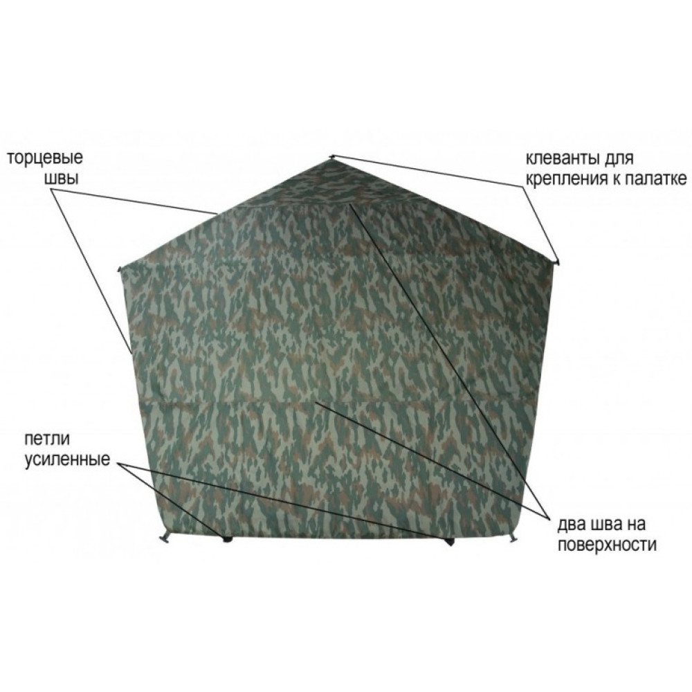 По углам пола закреплены усиленные петли из стропы для его фиксации к грунту. Стропа жестко закреплена к поверхности пола металлической пластиной, вырвать ее практически невозможно, даже при экстремальных нагрузках.