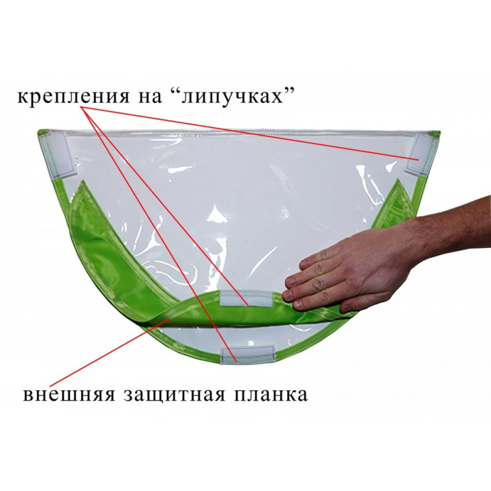 Окно крепится с внутренней стороны палатки на "липучках" и оснащено внешней защитной планкой, которая обхватывает нижний край оконного проема палатки и крепится на "липучках" снаружи. Система крепления окна плотно фиксирует его на тенте, имеет высокую герметичность, надежно защищая оконный проем палатки от продувания ветром и внешних осадков.