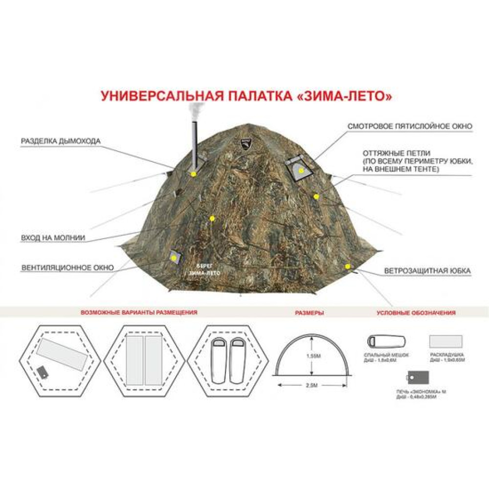 Время сборки до 30 секунд! Зима-лето состоит из двух водостойких тентов и прочного алюминиевого каркаса