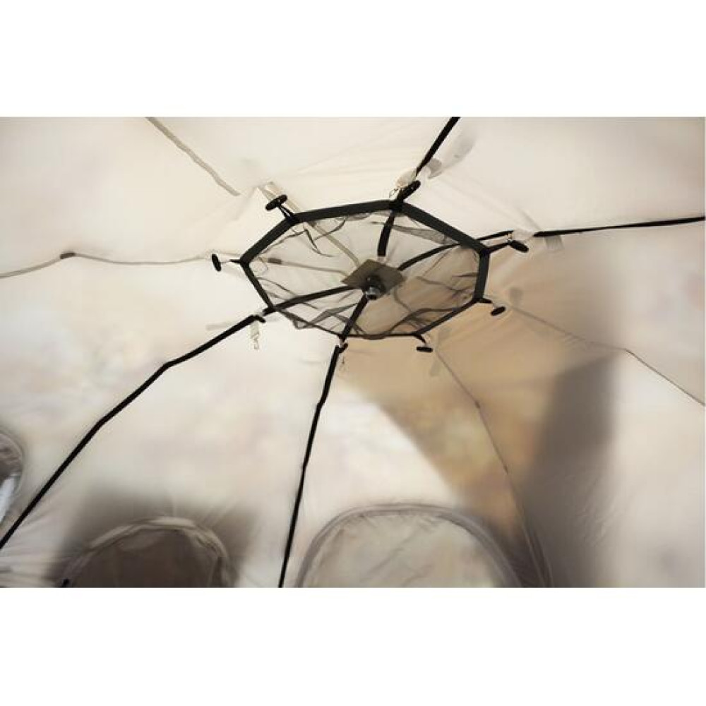 В крышу палатки вшита разделка дымохода, которая обеспечивает безопасное прохождение трубы через материал