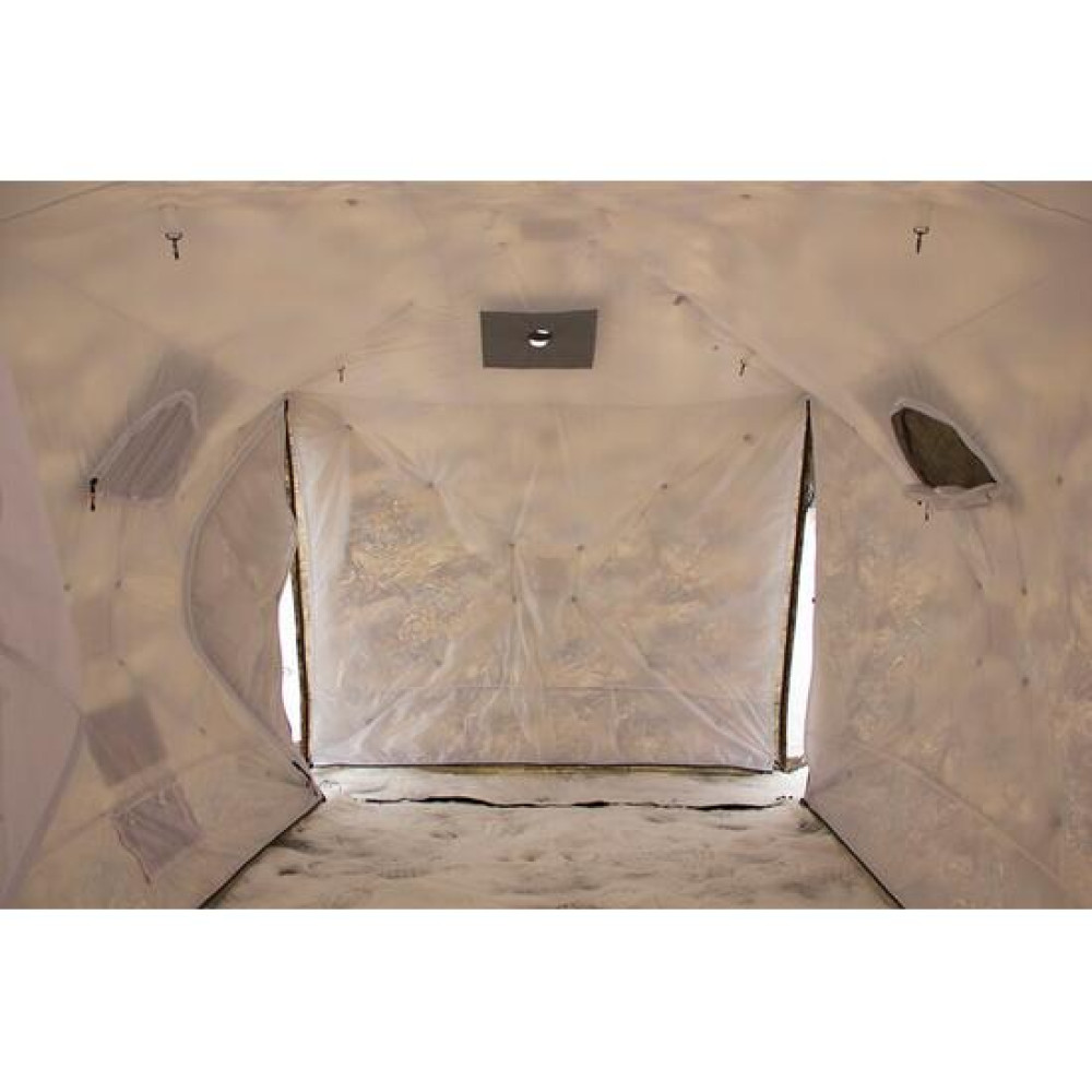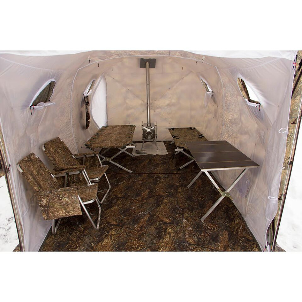 Благодаря конструкции Куб 4.40 ее удобно использовать во время зимней рыбалки или в качестве палатки-бани для компании из 4-6 человек; - Простая и быстрая установка