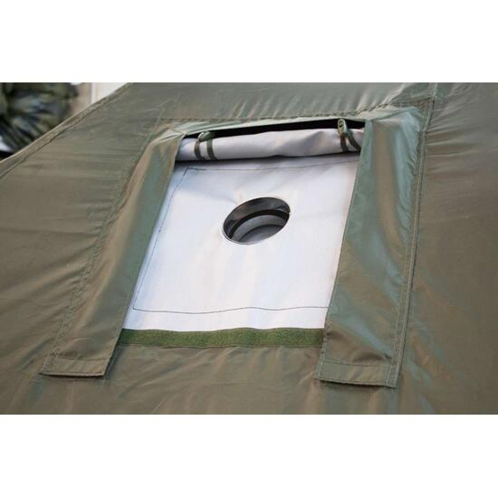 Дополнительный приток воздуха, при использовании походной печи, обеспечивается вентиляционным окном в нижней части палатки
