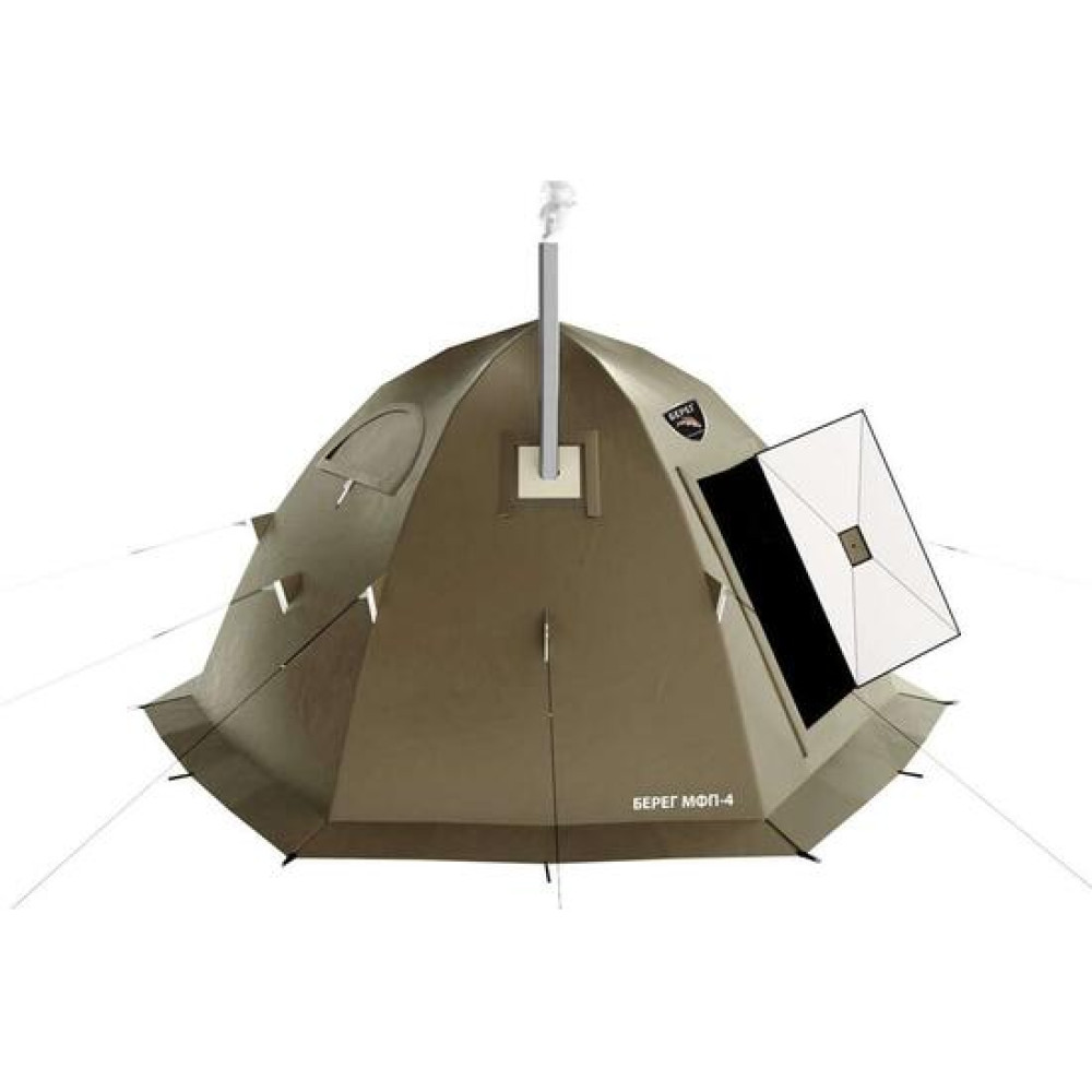 Конструкция и оснащение всесезонной палатки МФП-4 Всесезонная палатка МФП-4 пригодна для эксплуатации с походной печью