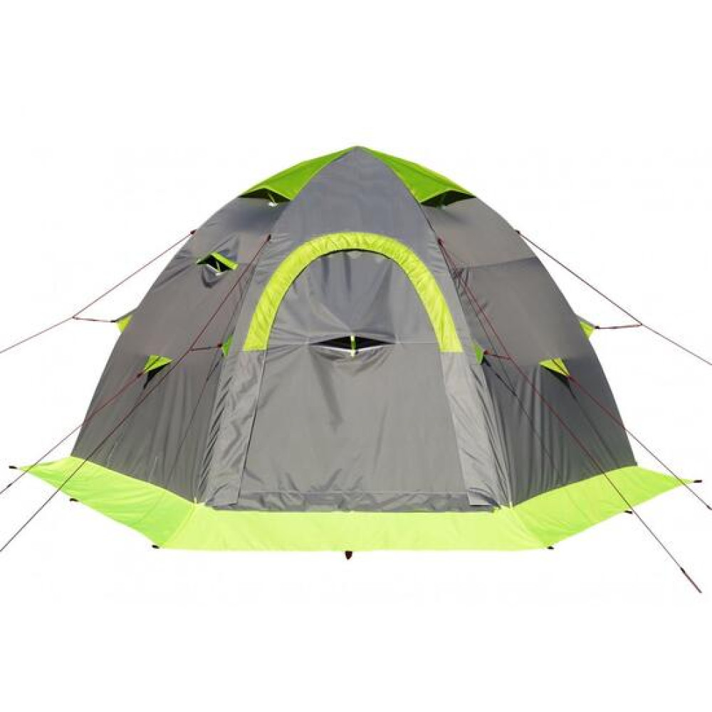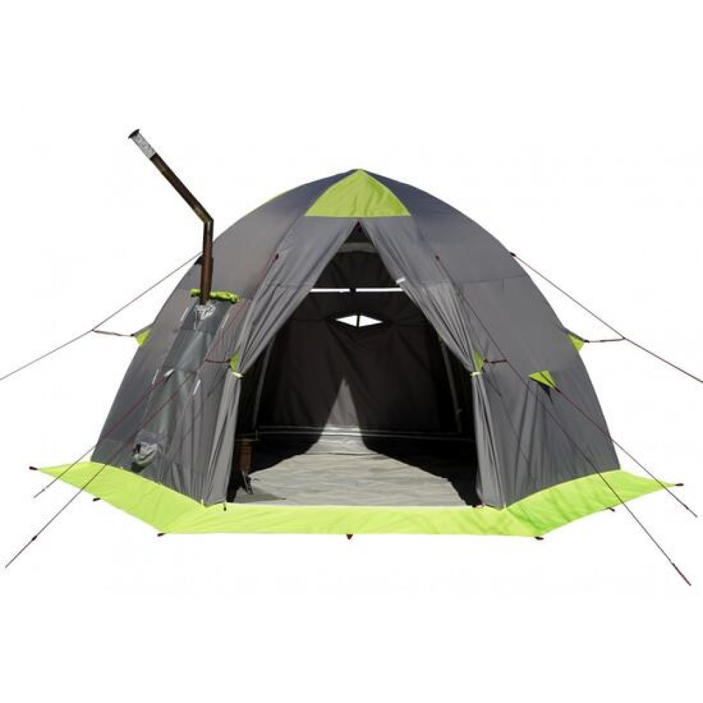 Палатка оснащена одним Т-образным и одним D-образным входами, которые расположены на противоположных стенках шестигранного купола