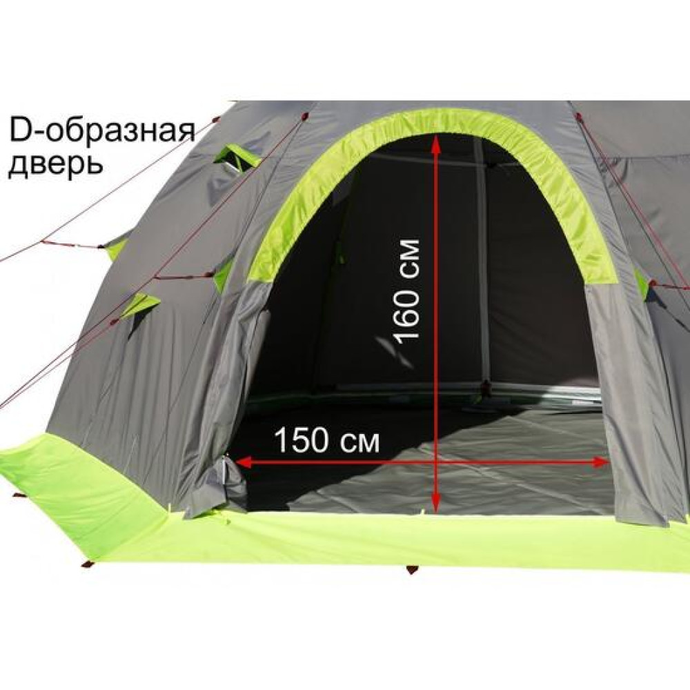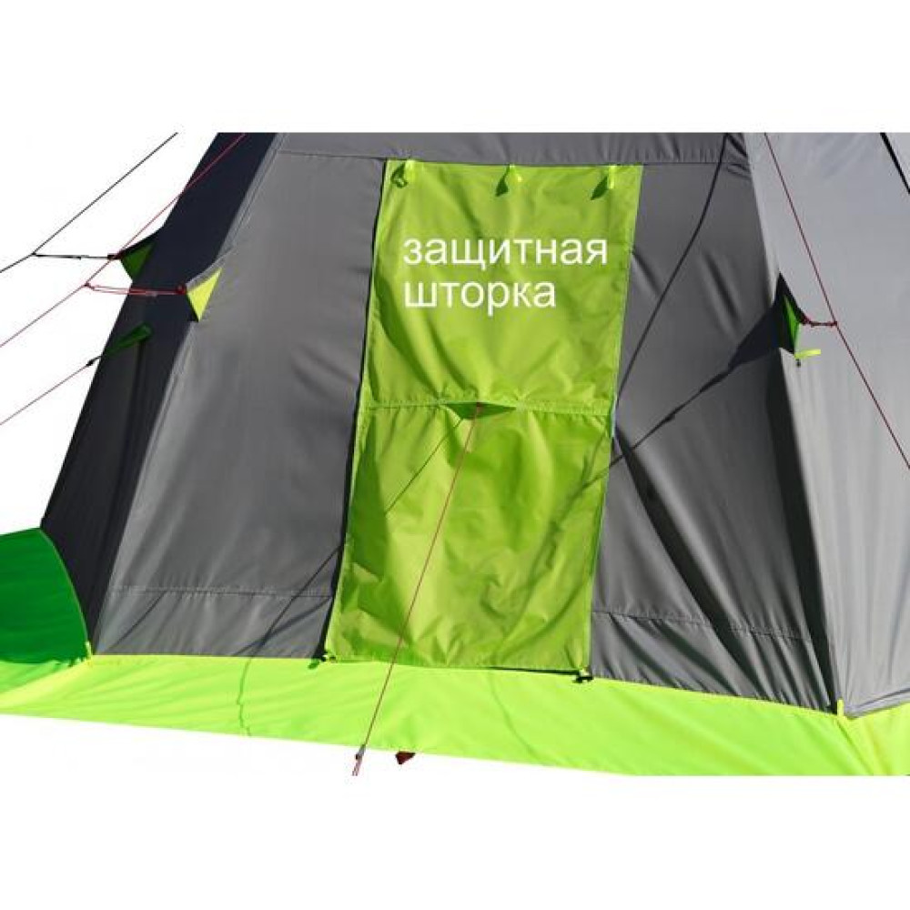 Окраска палатки выполнена в сером цвете с ярко-салатовыми вставками