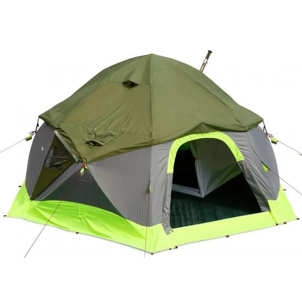 Для организации мобильной бани необходимо в предварительно раскрытой палатке установить огнеупорный клапан и внутреннюю капсулу, которые входят в комплект палатки
