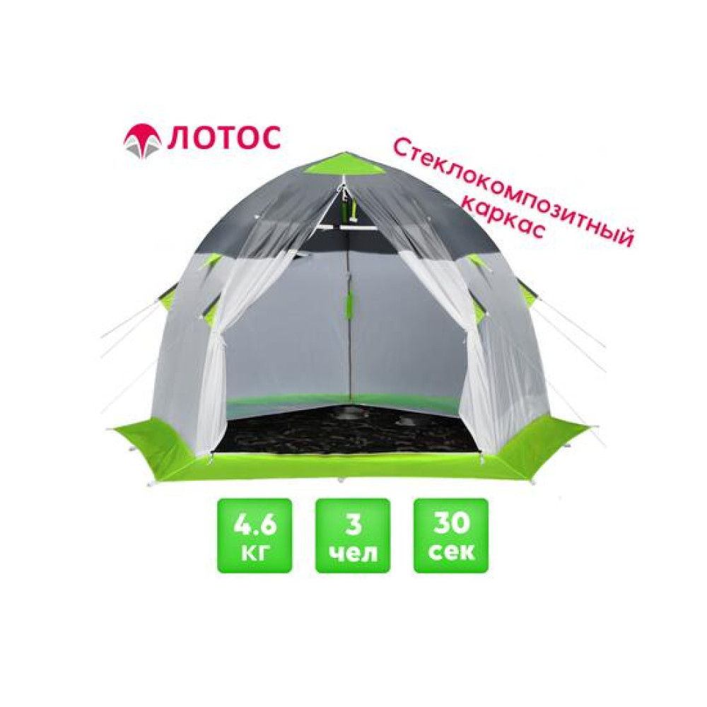 Модель полностью соответствует всем стандартам палаток серии ЛОТОС 3 по геометрическим размерам и системе раскрытия