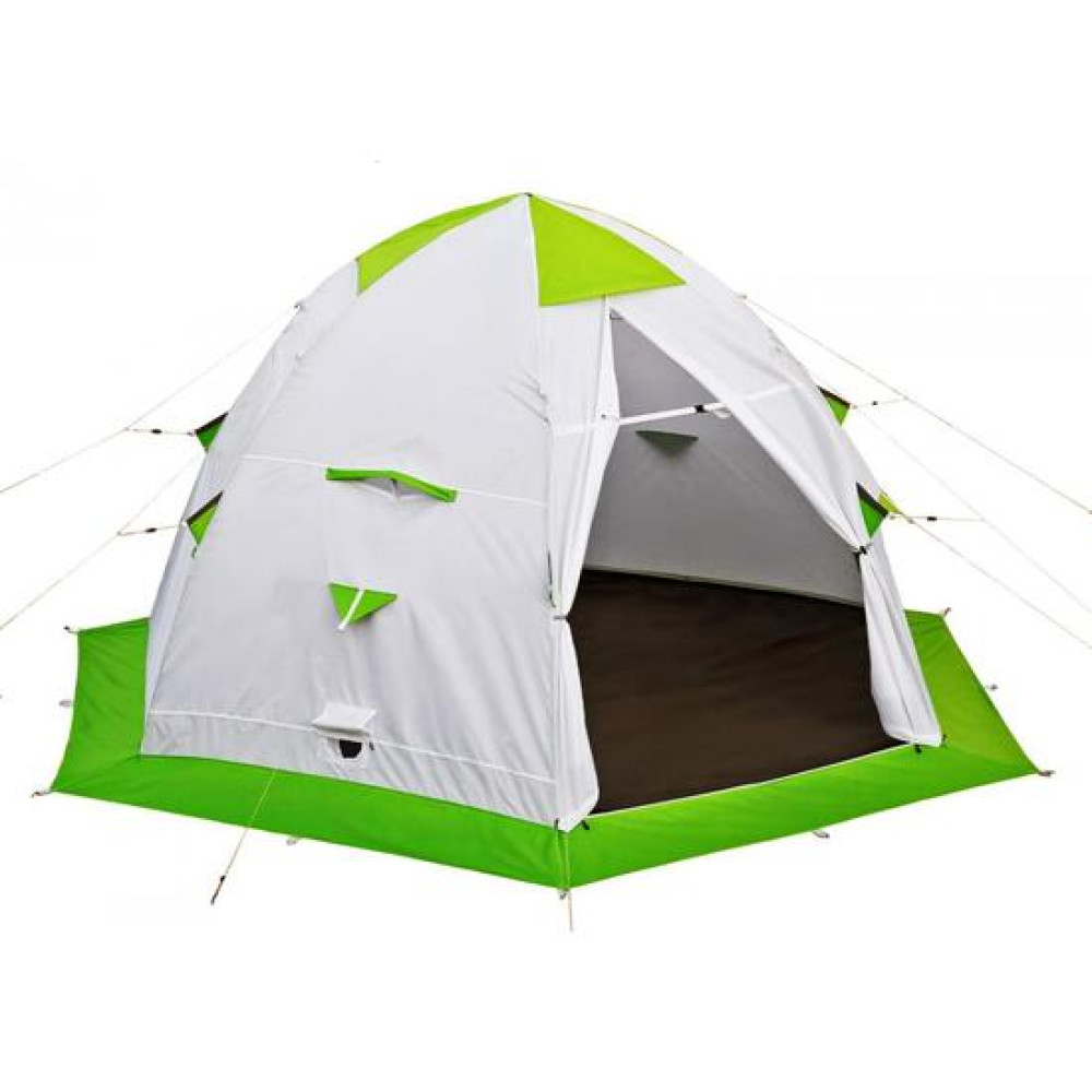 Зимняя палатка Лотос 5С, укомплектованная дополнительными внутренним и внешним тентами, может эксплуатироваться в качестве надежного межсезонного или летнего укрытия