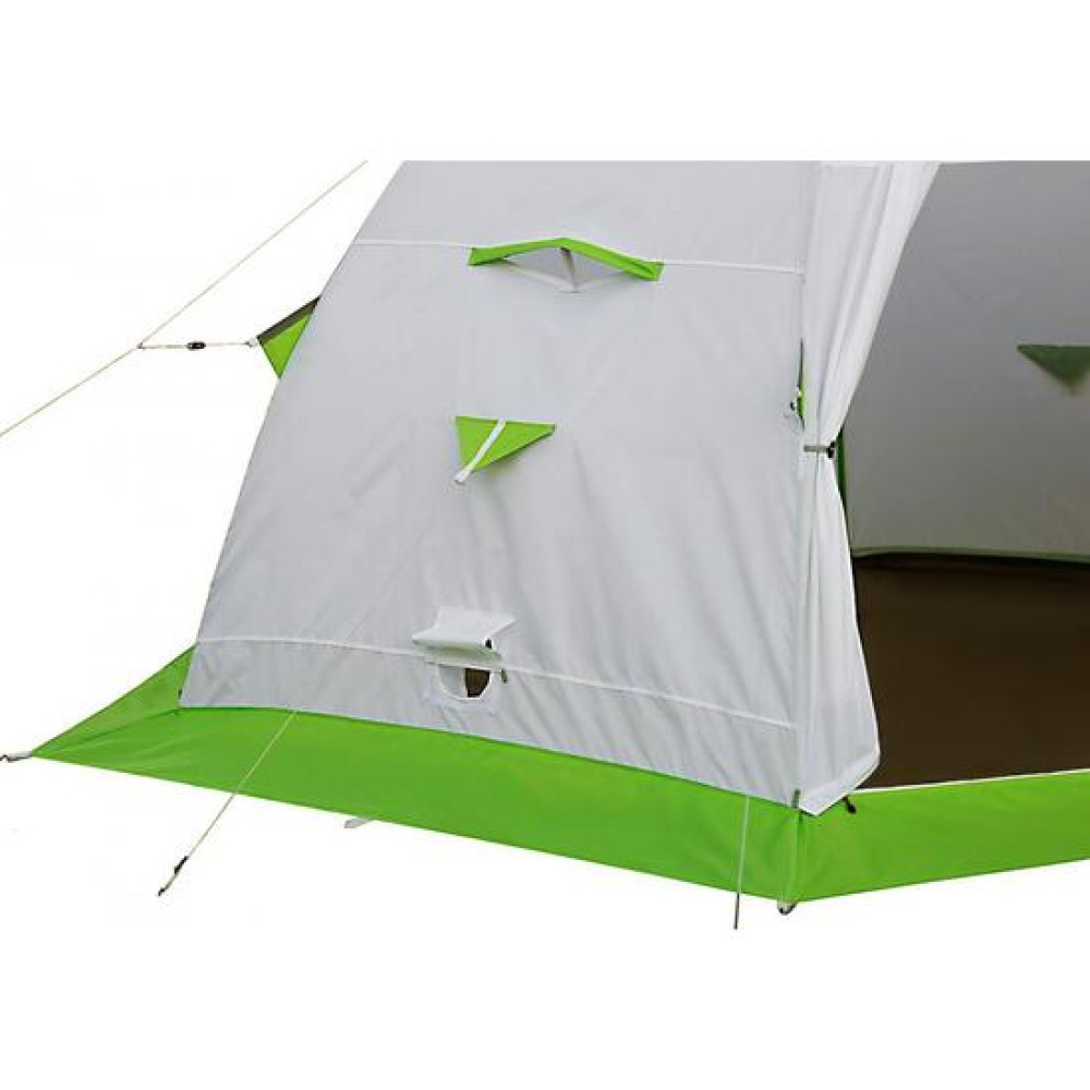 Окраска палатки выполнена в сером цвете с ярко-салатовыми вставками