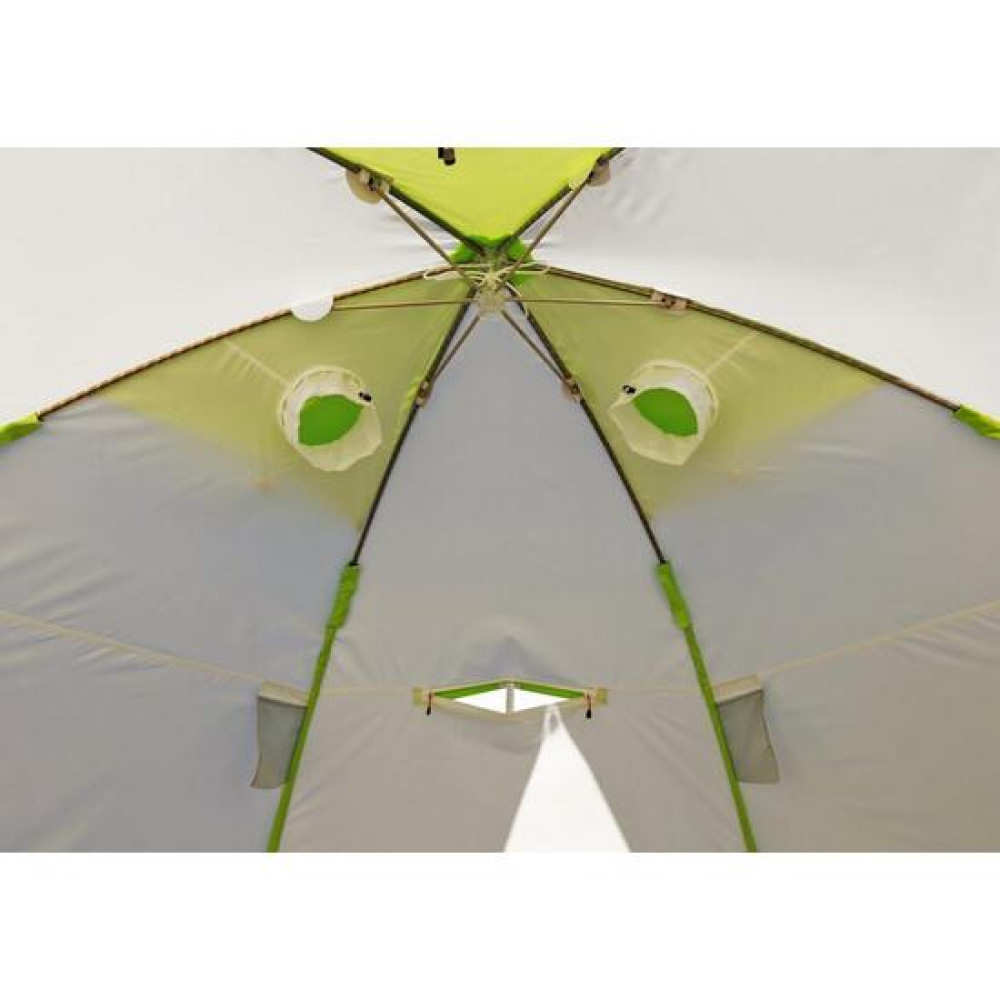 Тент палатки имеет хорошую световую проводимость, что позволяет не пользоваться окнами для внутреннего освещения в дневное время