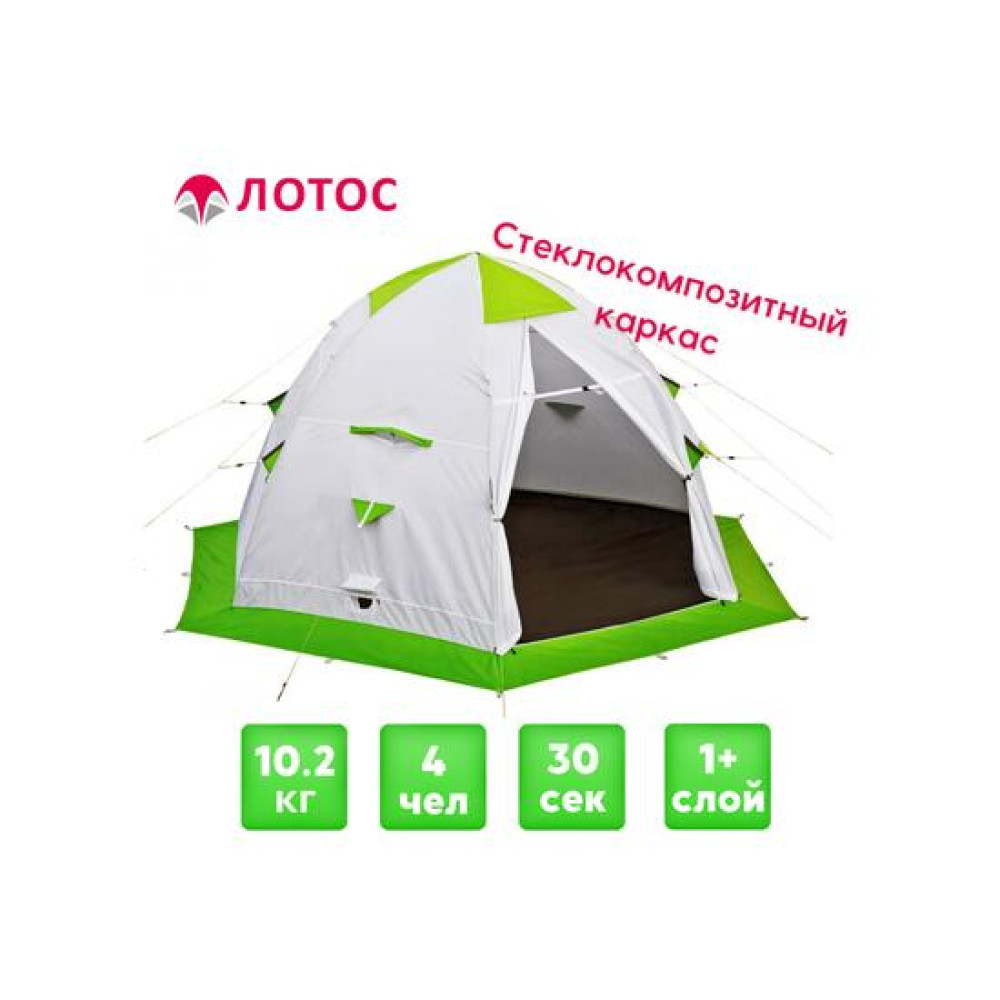 ОСОБЕННОСТИ МОДЕЛИ ЛОТОС 5С:максимально быстрое раскрытие палатки (до 30 секунд)максимально компактный размер в сложенном виде (100 см в длину)прочный и жесткий каркас выдержит штормовую погодукачественный тент с богатым комплектом оснащенияоснащенность максимально-возможным количеством усиленных креплений для фиксации на льду, что обеспечивает палатке способность выдерживать высокие ветровые нагрузкисъемное утепление – внутренний тент (возможность пристегивания, как легкого, так и утепленного внутреннего тента)удобная компрессионная сумка-рюкзак с увеличенным полезным объемом