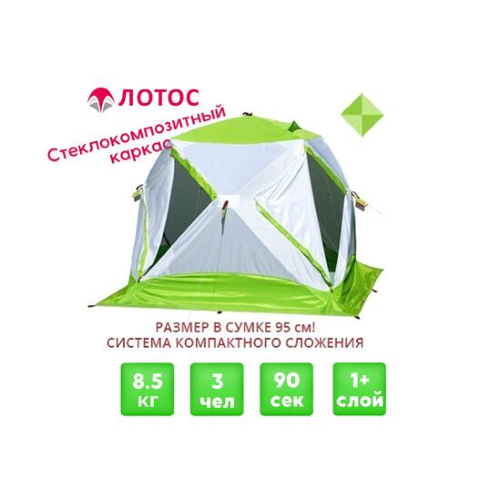 Все уникальные системы, применяемые в конструкции модели, защищены патентами: Система компактного сложения палатки - патент №2597652 Система гибкого фиксируемого узла – патент №182188 Система теплоизоляции тента палатки - патент №168383 Система гидроизоляции днища палатки - патенты №175368, №180094 Система фланцев для отверстий под лунку - патент №2633714 Процесс раскрытия и сложения палатки: Процесс установки палатки в гидро-термоизоляционное дно (на примере модели "Куб 4 Термо"): Уникальный каркас Лотос Куб Компакт: ✔Отличительная особенность палаток серии ЛОТОС Куб Компакт заключается в уникальной конструкции каркаса, позволяющей компактно складывать палатку в транспортировочное положение