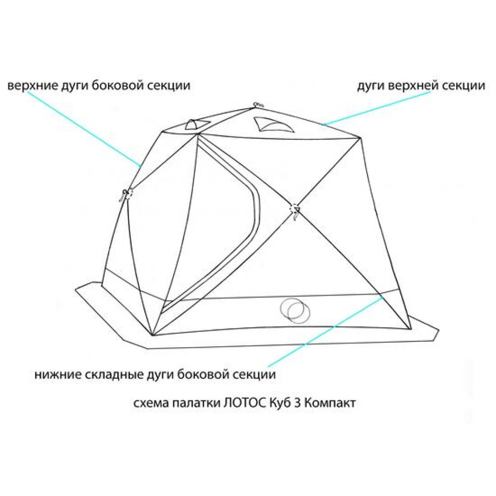Процесс раскрытия и сложения палатки: Процесс установки палатки в гидро-термоизоляционное дно (на примере модели "Куб 4 Термо"): Уникальный каркас Лотос Куб Компакт: ✔Отличительная особенность палаток серии ЛОТОС Куб Компакт заключается в уникальной конструкции каркаса, позволяющей компактно складывать палатку в транспортировочное положение