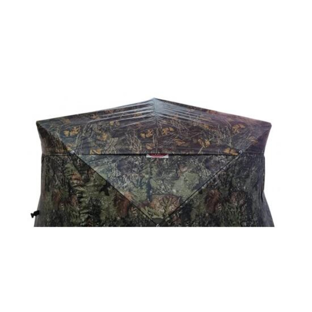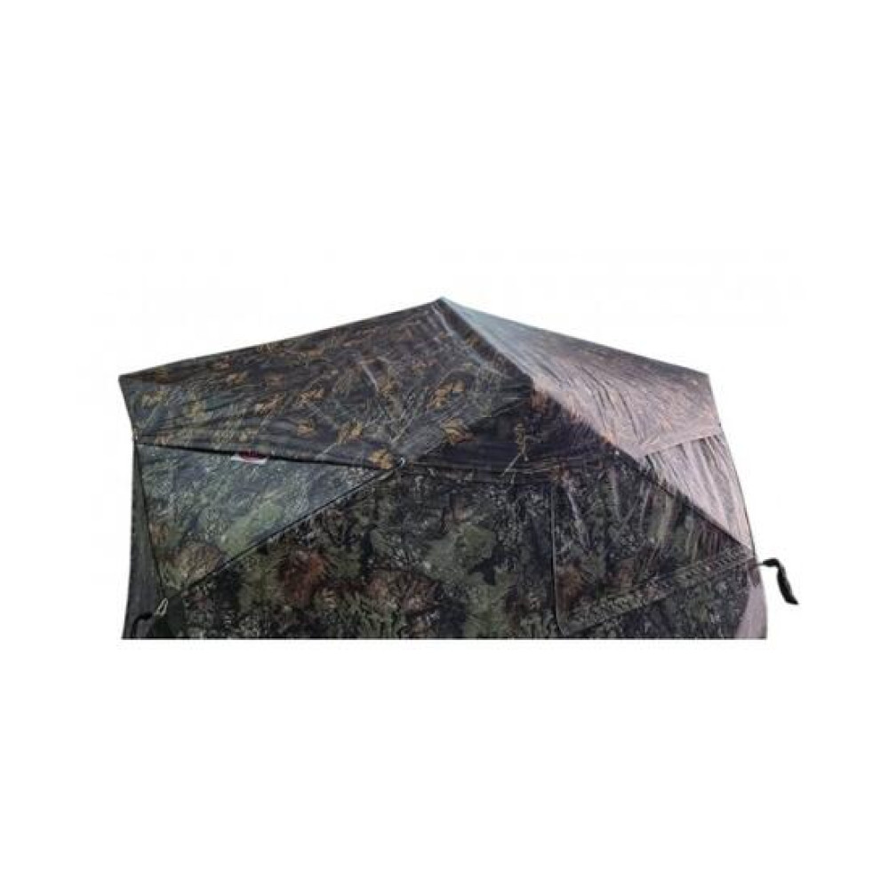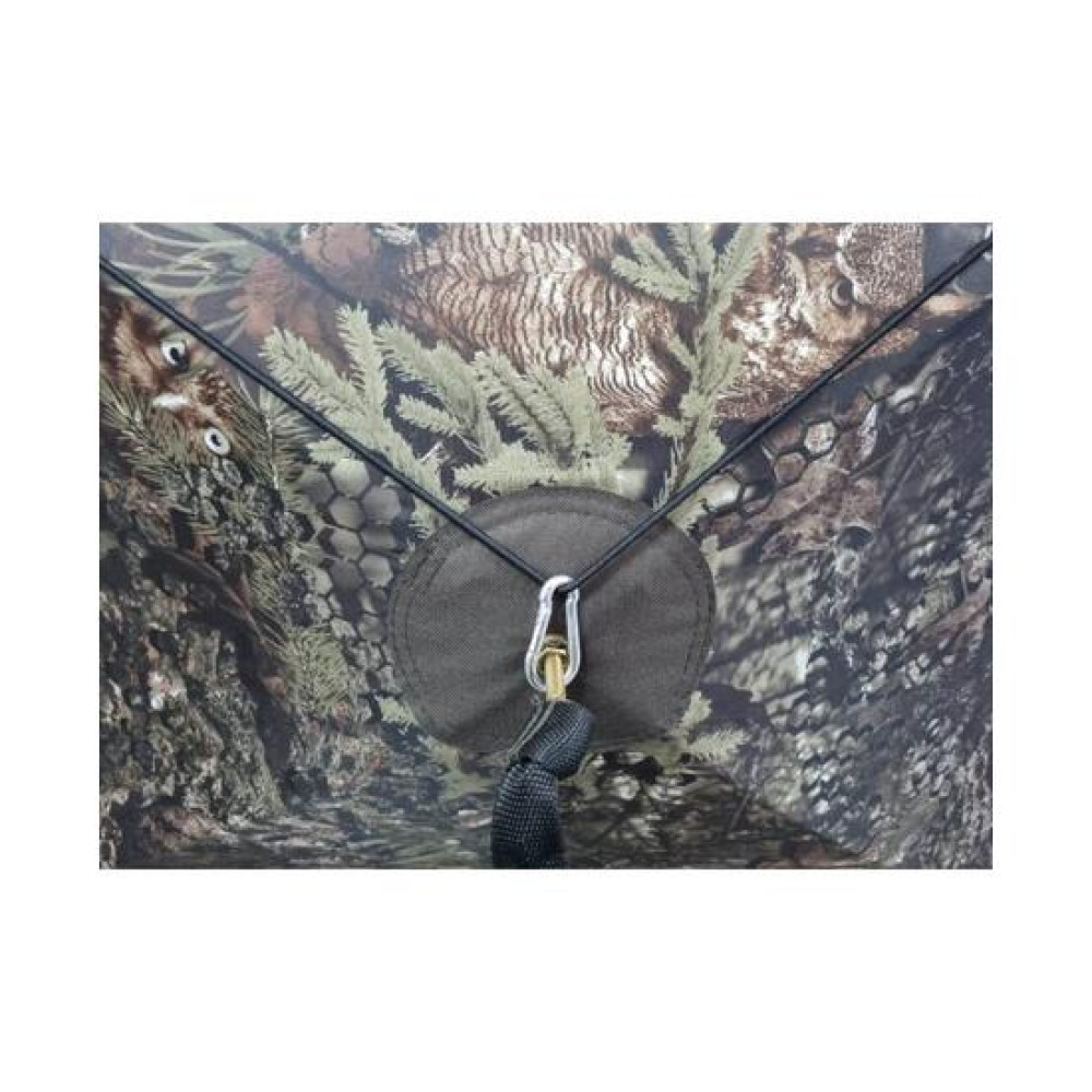 Крепится оттяжками к хабам палатки с помощью карабинов