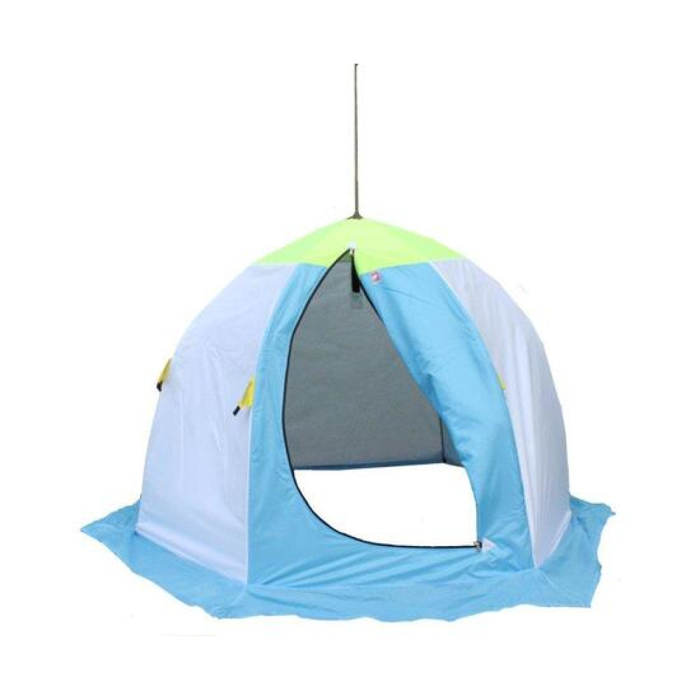 Количество слоёв ткани: 1Количество мест:1-2Количество входов:1Размер: 220х185х145 смРазмер в сложенном виде: 105х20х20 смВес: 3.2кг.Модель снабжена ветроснегозащитной юбкой, окном для вентиляции и внутренним карманом