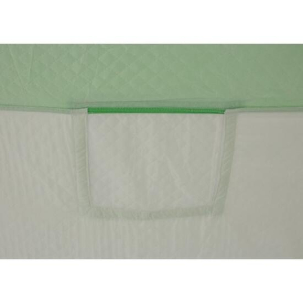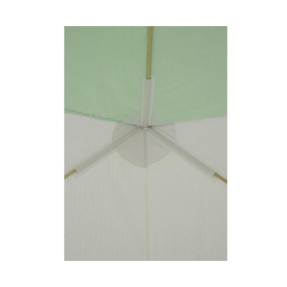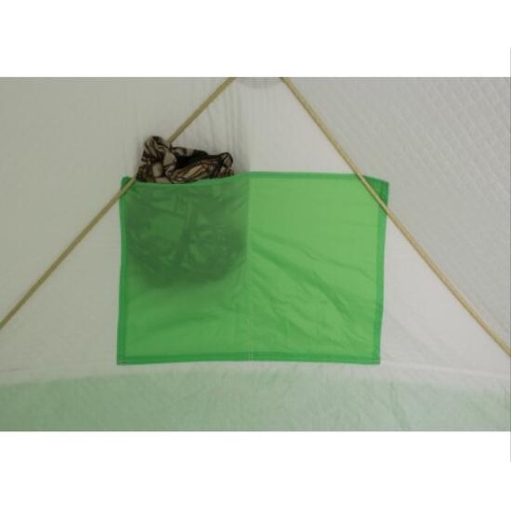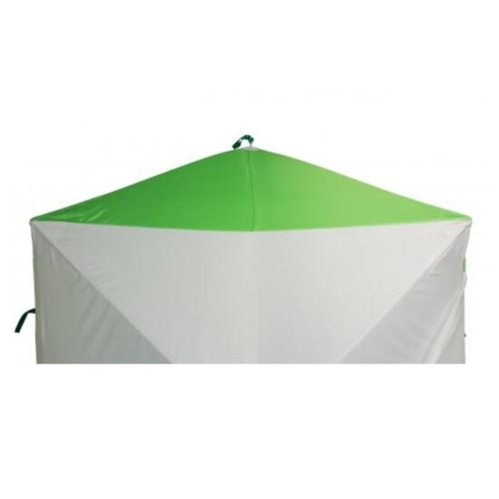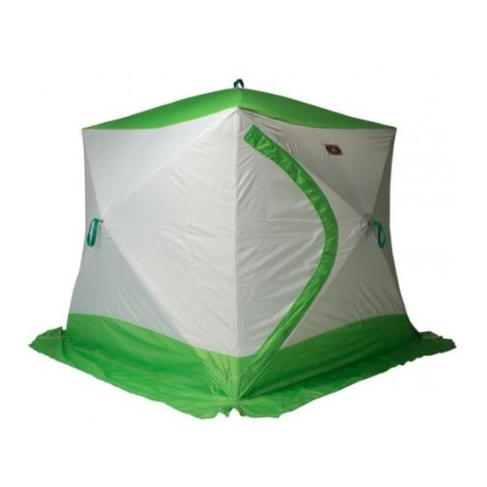Количество слоёв ткани - 3 (внешний слой из Оксфорда 210D, внутренний - синтепона + таффета 190Т)Количество мест - 3Количество входов - 1Размер: 200*200 см по основанию, максимальная высота - 190 см, высота по ребру - 165 смРасстояние от хаба до хаба - 235 смРазмер в сложенном виде: 150 х 30 х 25 смВес: 9 кг.Цвет: бело-зеленыйЕсть ветро/снегозащитная юбка (25 см)Окно на липучке с дополнительной вставкой под трубу, 1 внутренним карманомДышащая вставка на крыше отсутствуетПрилагается чехол для переноски и хранения МАТЕРИАЛ Материал тента: внешний слой Оксфорд 210d, внутренний слой - термостежка (таффета 190Т + синтепон)