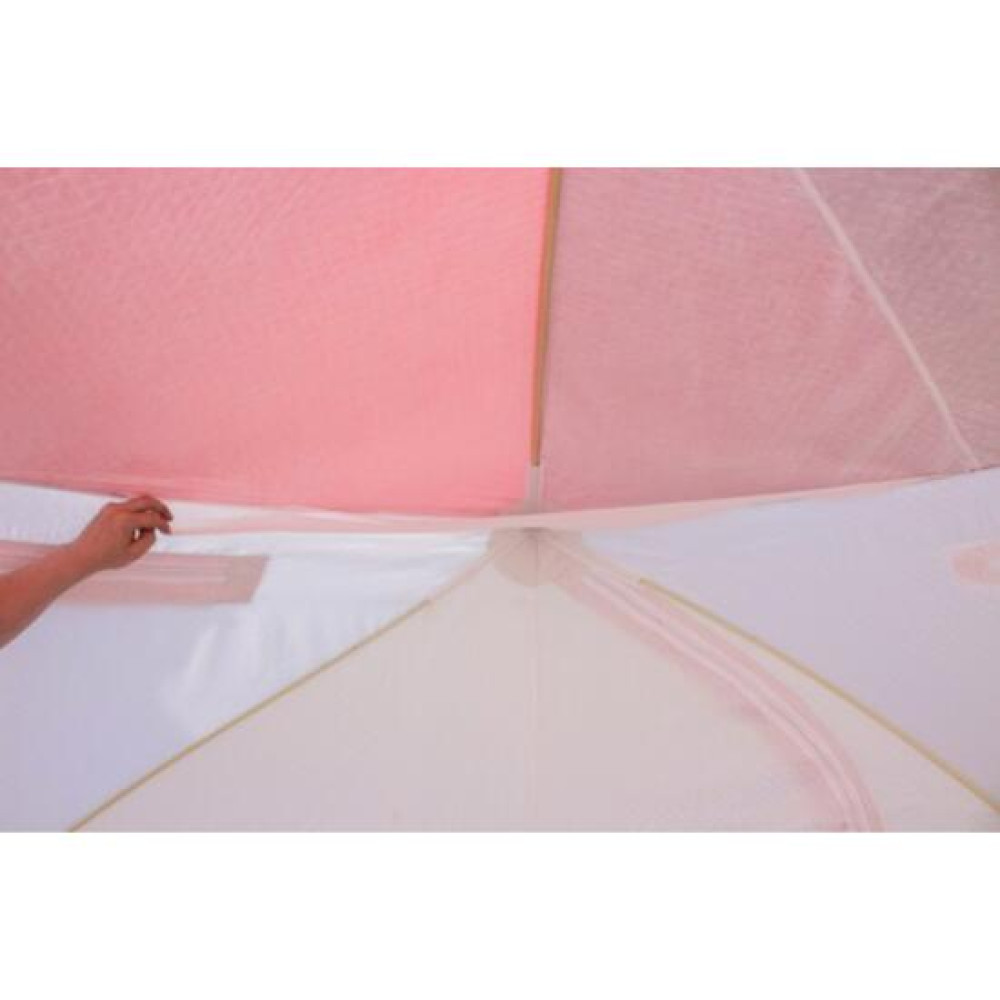 Модель снабжена ветро/снегозащитной юбкой (30 см), двумя окнами для вентиляции, окном на липучке с дополнительной вставкой под трубу и 8 внутренними карманами (по 4 кармана с двух сторон), а также угловой сеточкой под потолком