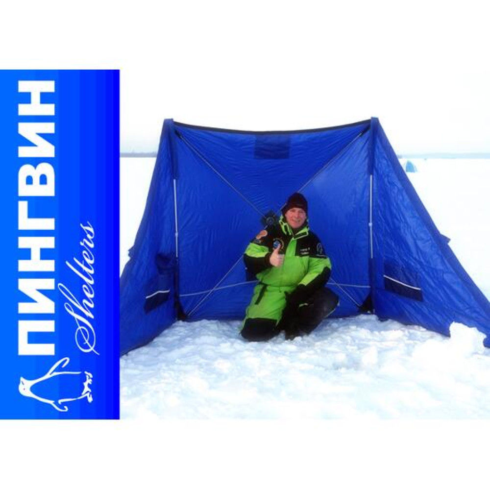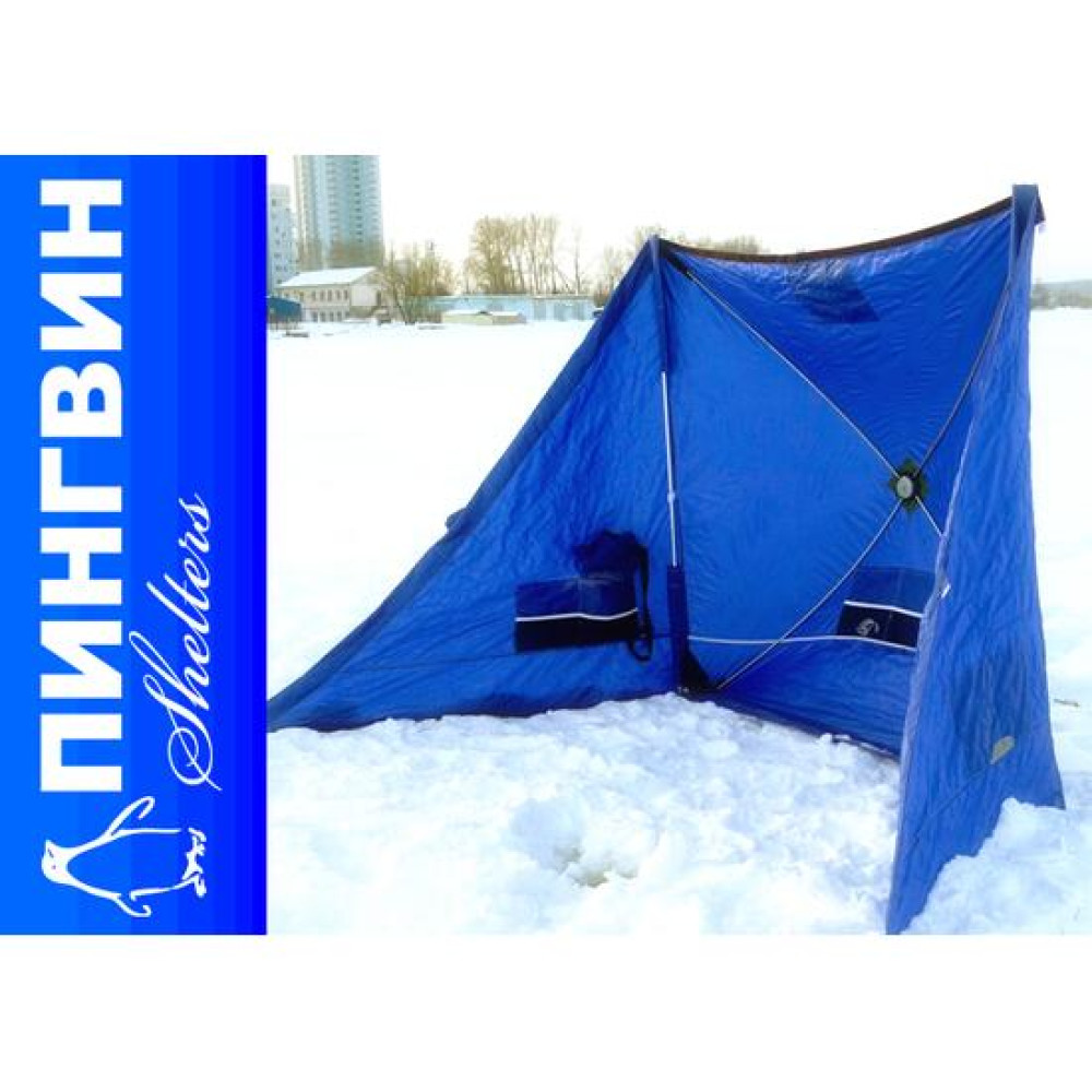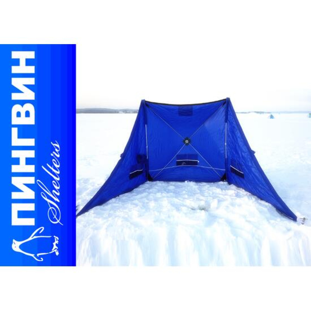 Зимнее укрытие для рыбака Пингвин Крыло Комфорт изготавливается из Оксфорд 240 с полиуретановой пропиткой (PU 2000), каркас из алюминия (8 мм), имеет 3 сдвоенных кармана с сетками и 9 оттяжек