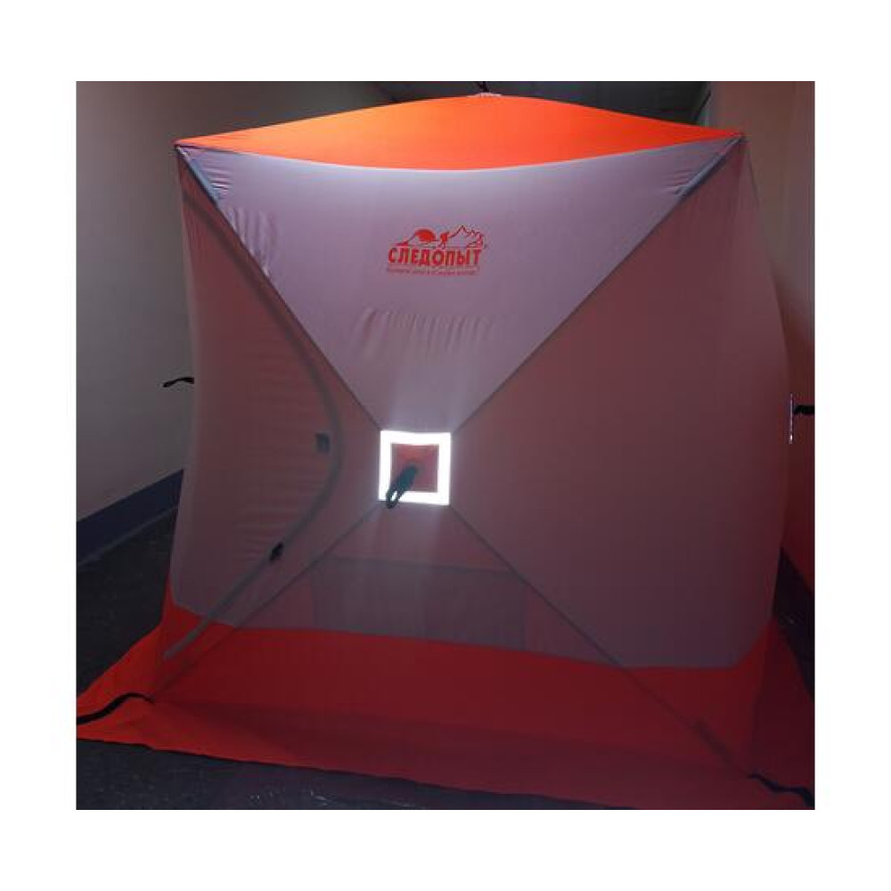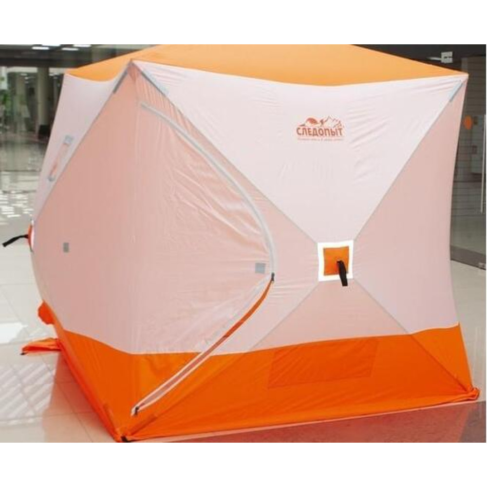 Последовательность установки В первую очередь после извлечения палатки Следопыт КУБ из сумки, и его разворота на ледяной поверхности, следует закрепить все четыре конца при помощи специальных ввертышей
