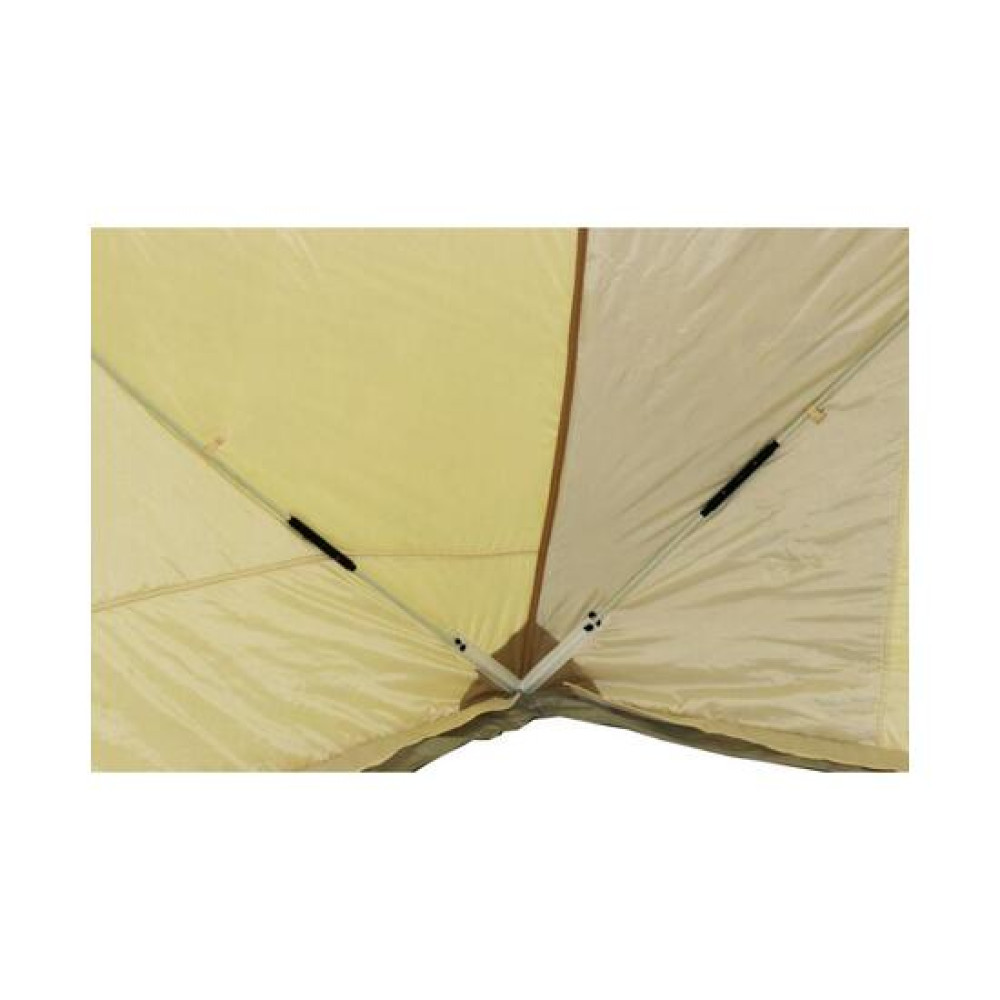 Стены палатки изготовлены из двух слоев водоотталкивающей ткани, между которыми находится толстый слой утеплителя
