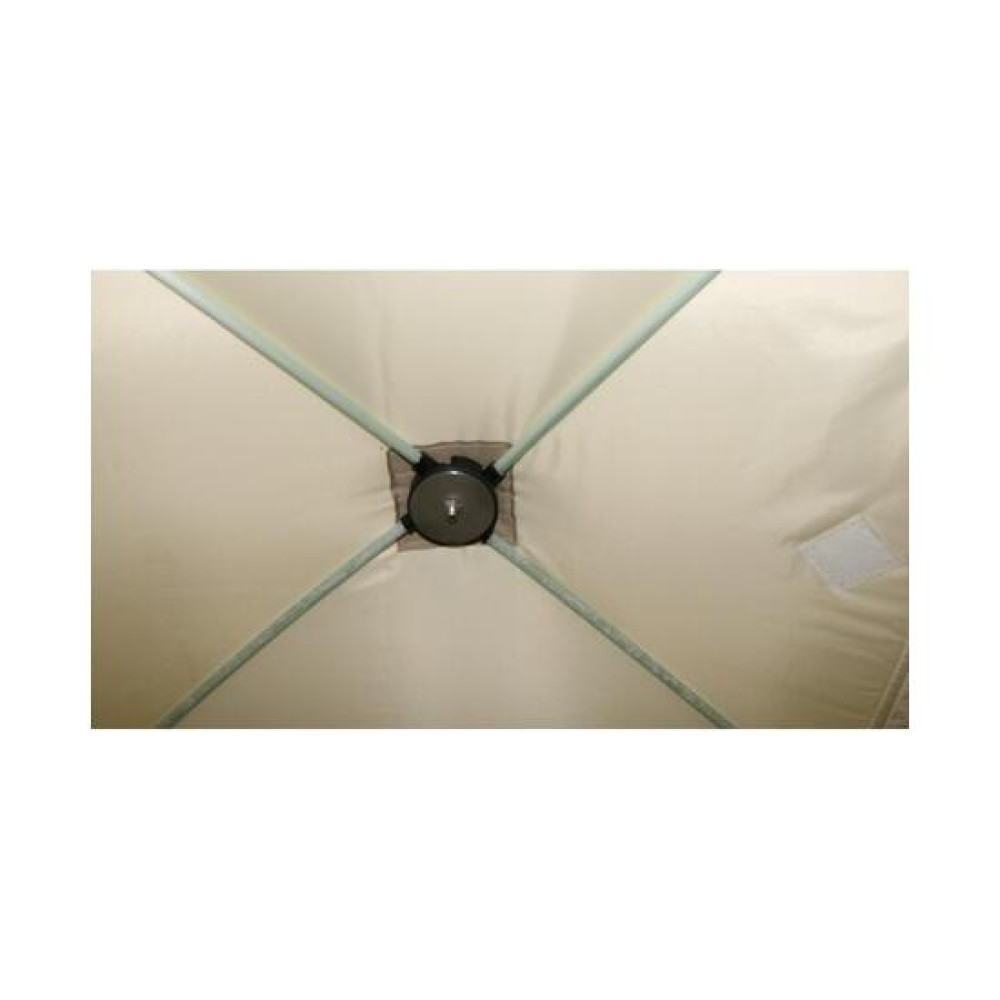 Стены палатки изготовлены из двух слоев водоотталкивающей ткани, между которыми находится толстый слой утеплителя