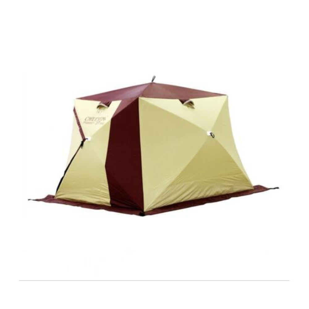 Параметры зимней палаткиКоличество входов2Высота внутренняя боковая1550 ммВысота по центру1800 ммДлина внутренняя по полу2000х2600 ммРазмер (сложенная палатка)длина 1700 мм, диаметр 310 ммГеометрические размеры могут колебаться в пределах±50ммМасса с чехлом15,5 кгМатериал тентаOxford 240D 2000PUПлотность утеплителя150 г/м2Масса может различаться в пределах10 % Меры безопасности при использовании палатки - Каждая палатка оснащена вентиляционными окнами и клапанами приточной вентиляции