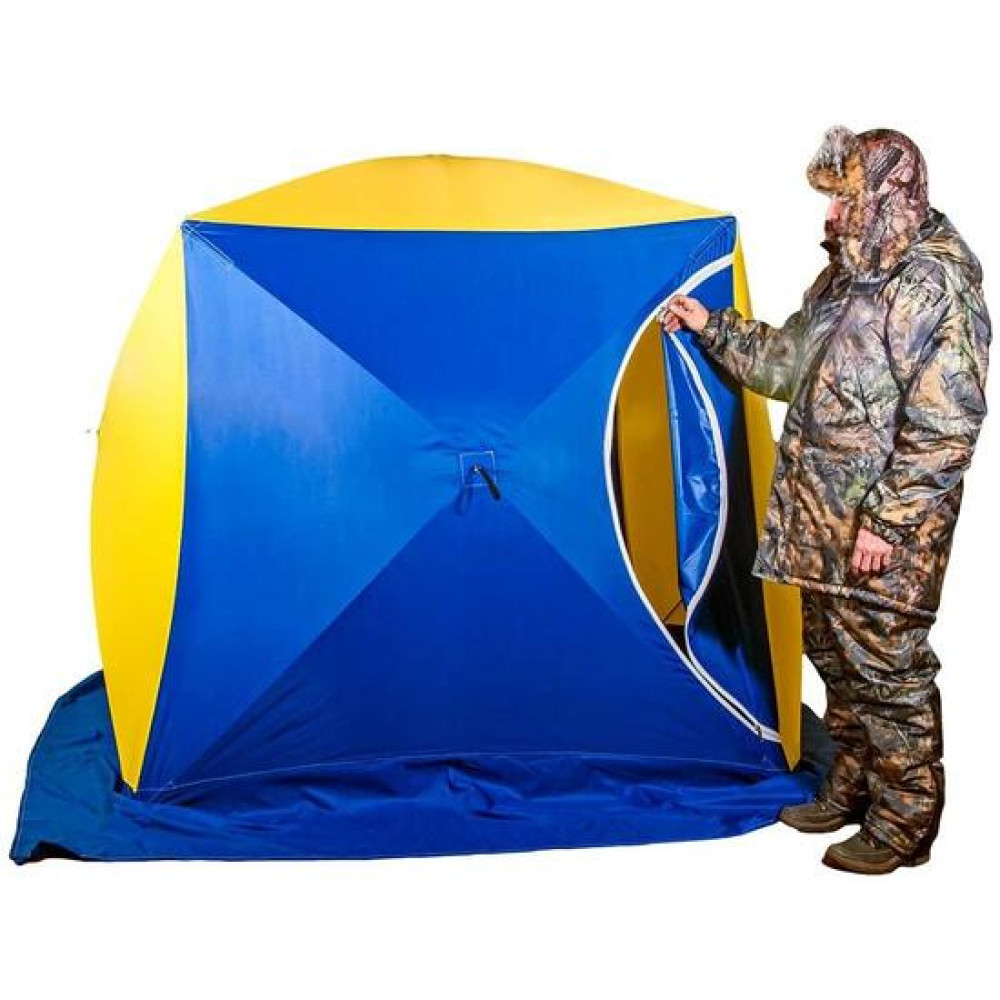 Быстросборная палатка Стэк Куб 2 для зимней ловли со льда позволит рыболову чувствовать себя максимально комфортно на зимней рыбалке в любых погодных условиях