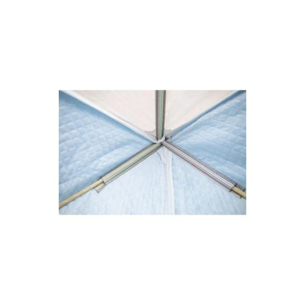 Тент палатки выполнен из ткани, которая позволяет пропускать дневной свет во внутрь палатки, благодаря чему рыболов имеет возможность ловить рыбу в дневное время без подсветки дополнительными осветительными приборами