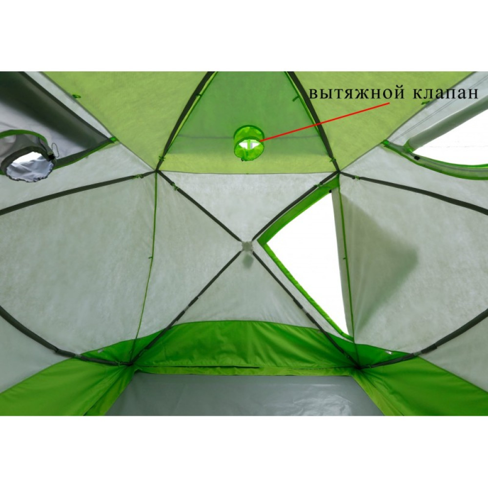 - Жилое пространство гарантирует комфорт во время проживания или рыбалки, а отсутствие влаги и эффективная вентиляция (клапан в макушке) обеспечат отсутствие конденсата.