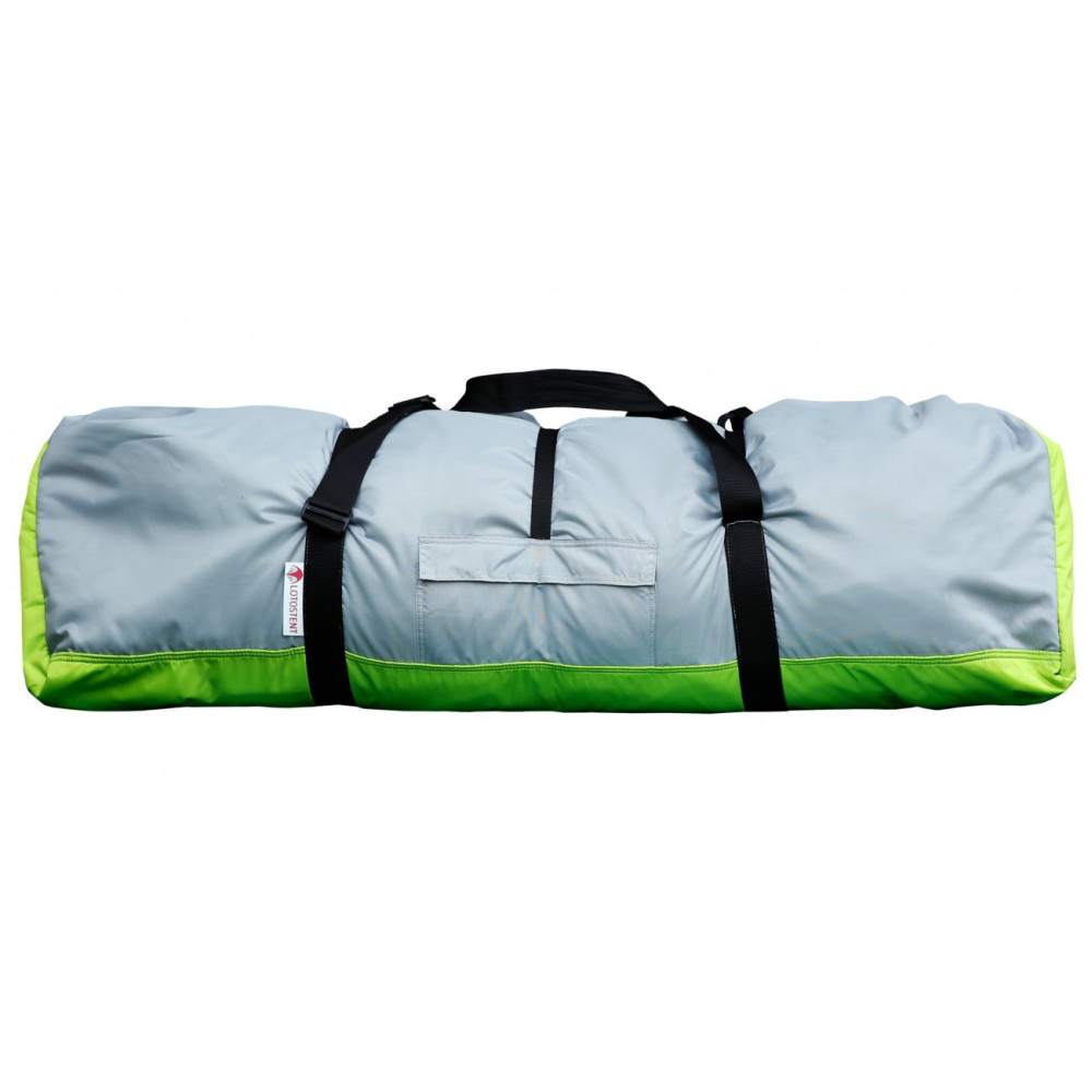 - Компрессионная трехслойная сумка-рюкзак! Огромная, усиленная сумка с компрессионной системой на трех ремнях-утяжках позволяет компактно сжать упакованную палатку до 45 см в диаметре. Многослойная в торцевых частях сумка обладает хорошими демпферными свойствами, защищая палатку от возможных повреждений при транспортировке.