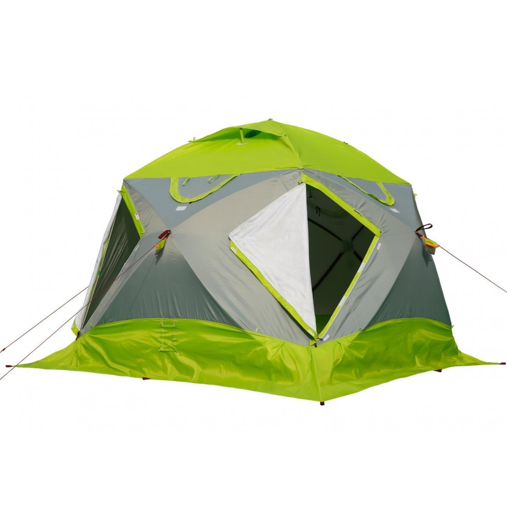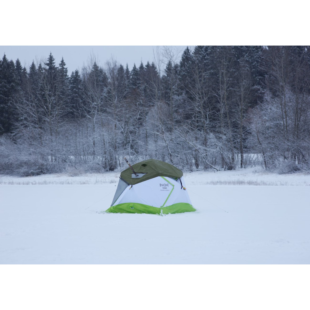 Влагозащитный тент дублирует все функциональные элементы палатки обеспечивая укрытию полную защиту от дождя (опция). - Высокая свето-проводимость тента, выполненного в серо-салатовом цветовом исполнении с использованием светопроводящих тканей и утеплителя.