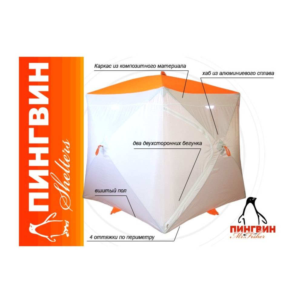 9. Встроенный пол! Складной пол из Oxford 240T с клапаном посередине, позволяет удалять шугу из лунок, при просушке можно вывернуть наизнанку. 10. Проверенное временем и тысячами рыболовов качество изготовления фабрики Пингвин.
