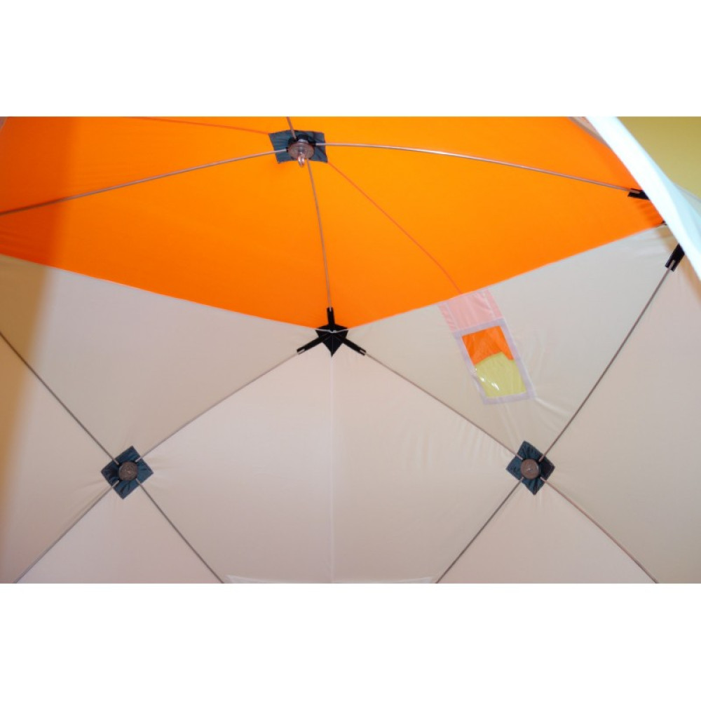 Обратите внимание, что тент не обладает дышащими свойствами. Для циркуляции воздуха внутри палатки рекомендуем использовать форточки или бегунок на входной двери. Также мы рекомендуем укрепить данную палатку растяжками, независимо от наличия ветра.