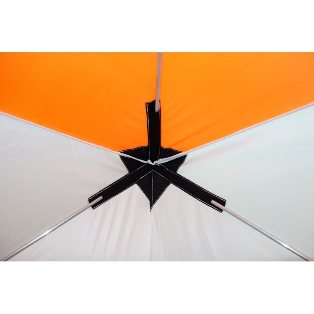 5.При креплении укрытия на льду распределять растяжки симметрично по всему периметру, что поможет избежать перекоса и чрезмерной нагрузки на молнию входной двери.