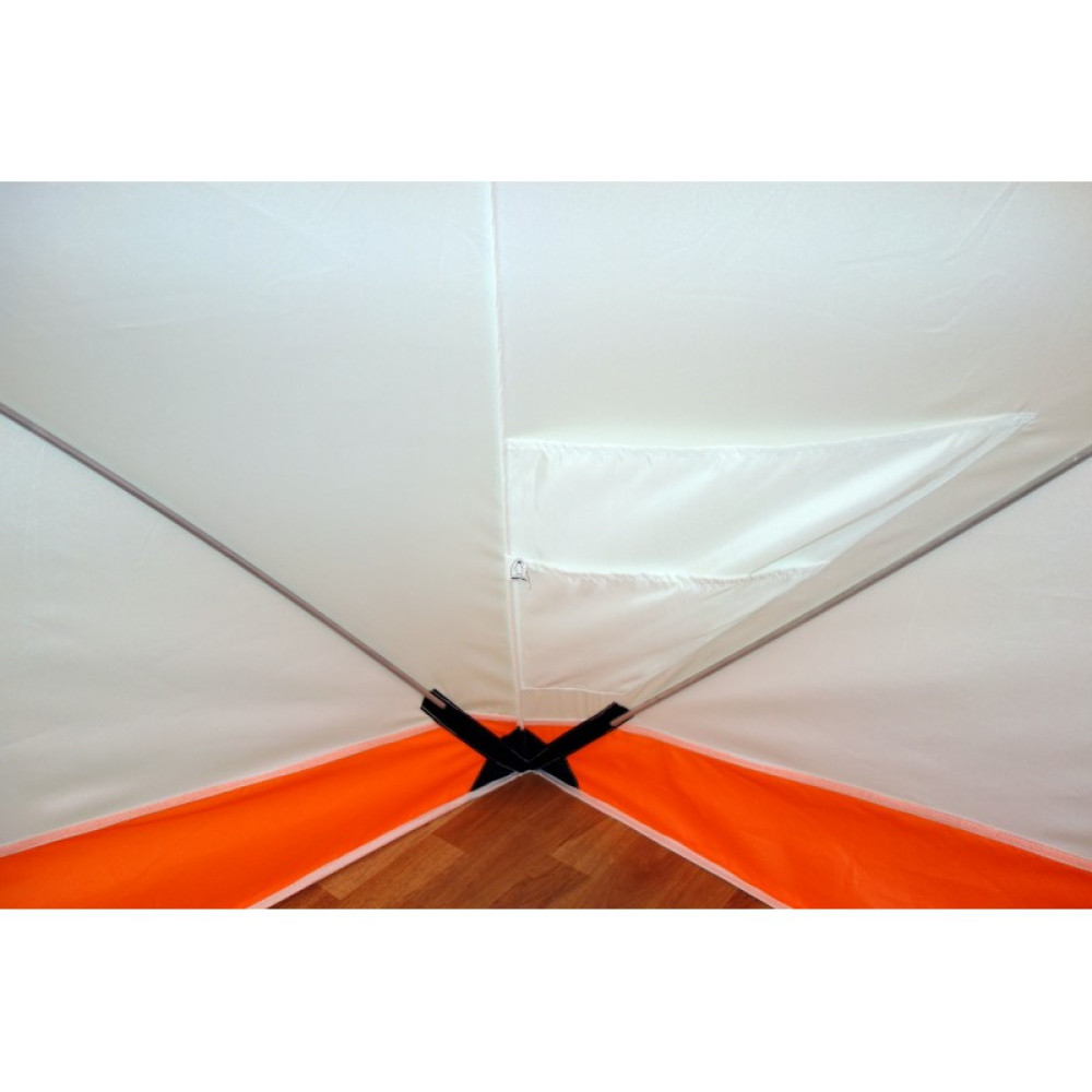 Обратите внимание, что тент не обладает дышащими свойствами. Для циркуляции воздуха внутри палатки рекомендуем использовать форточки или бегунок на входной двери. Также мы рекомендуем укрепить данную палатку растяжками, независимо от наличия ветра.